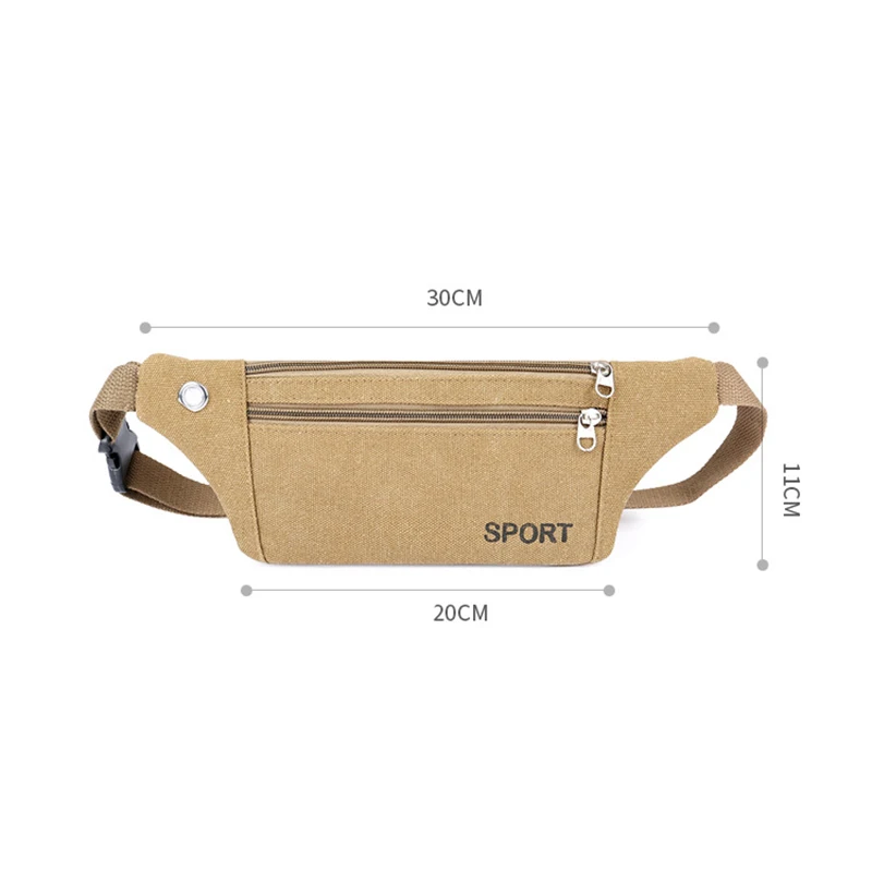 • 1 Canvas Fanny Pack Main Pocket(30*20*11cm): The pocket will hold the 6″ iphone and your passport or other daily itmes.