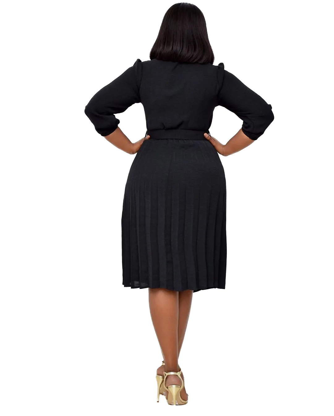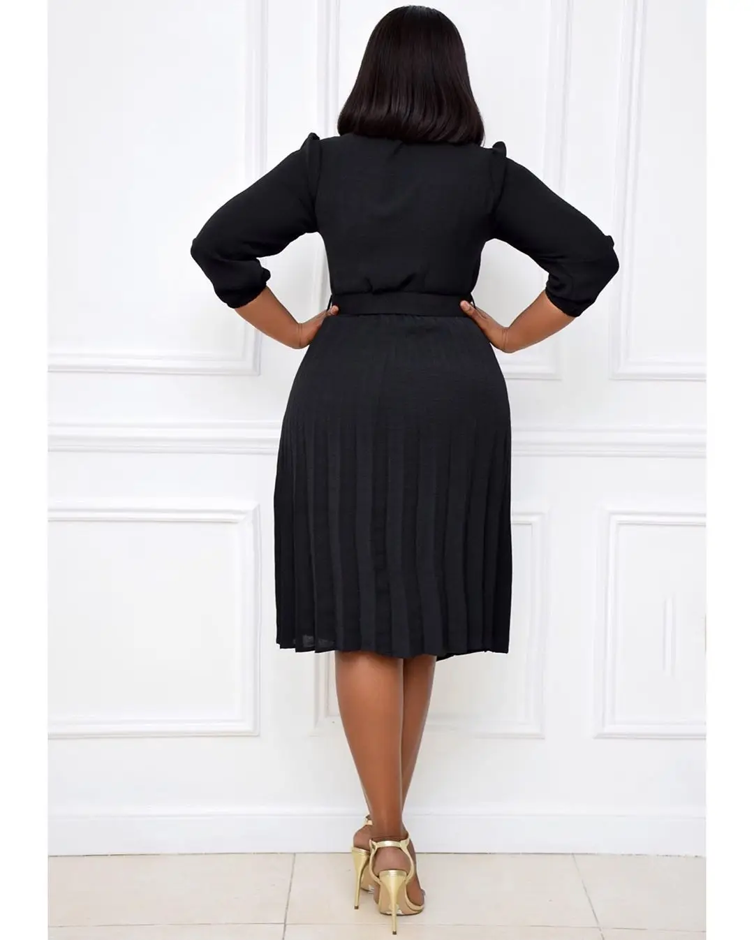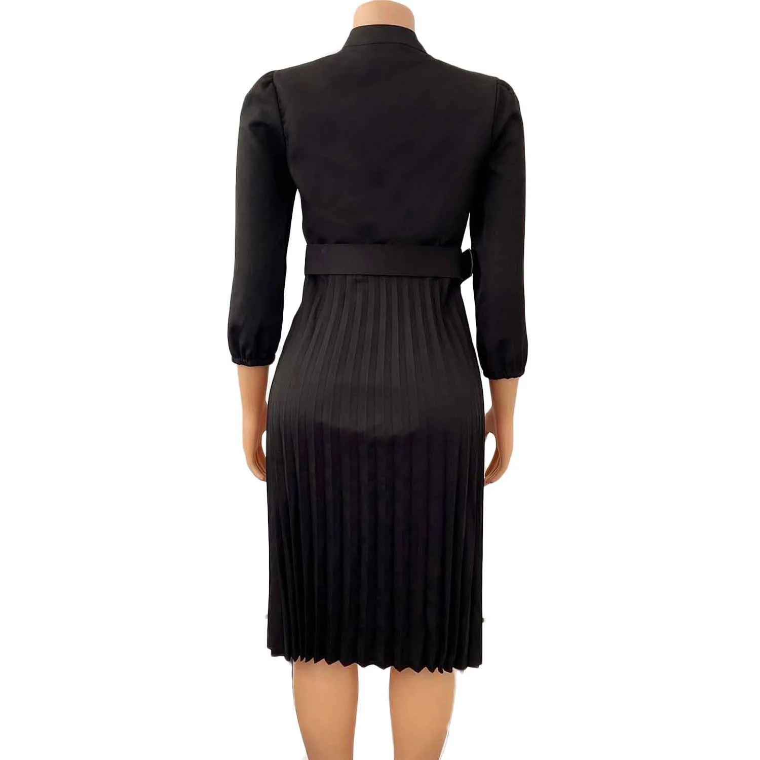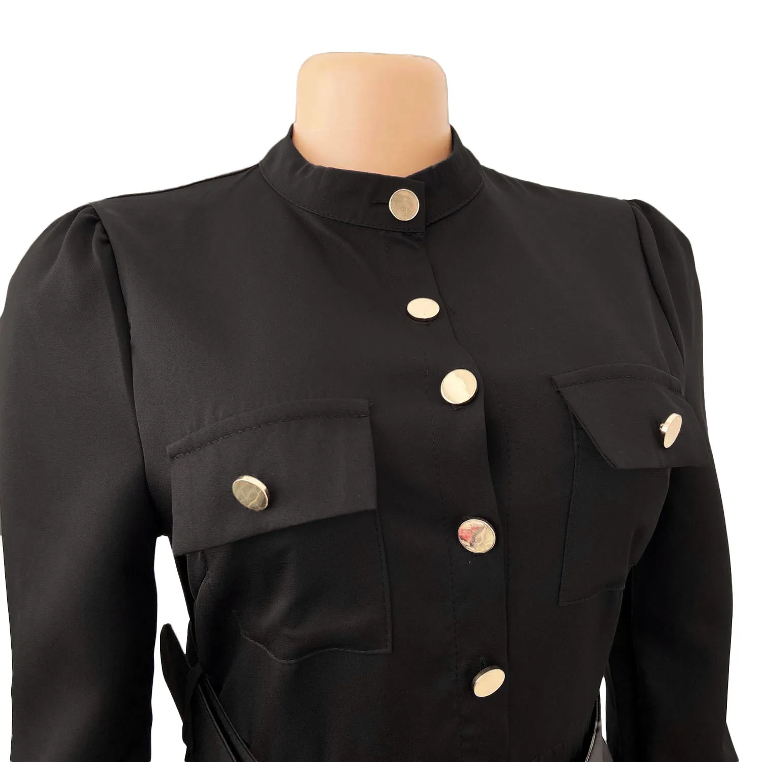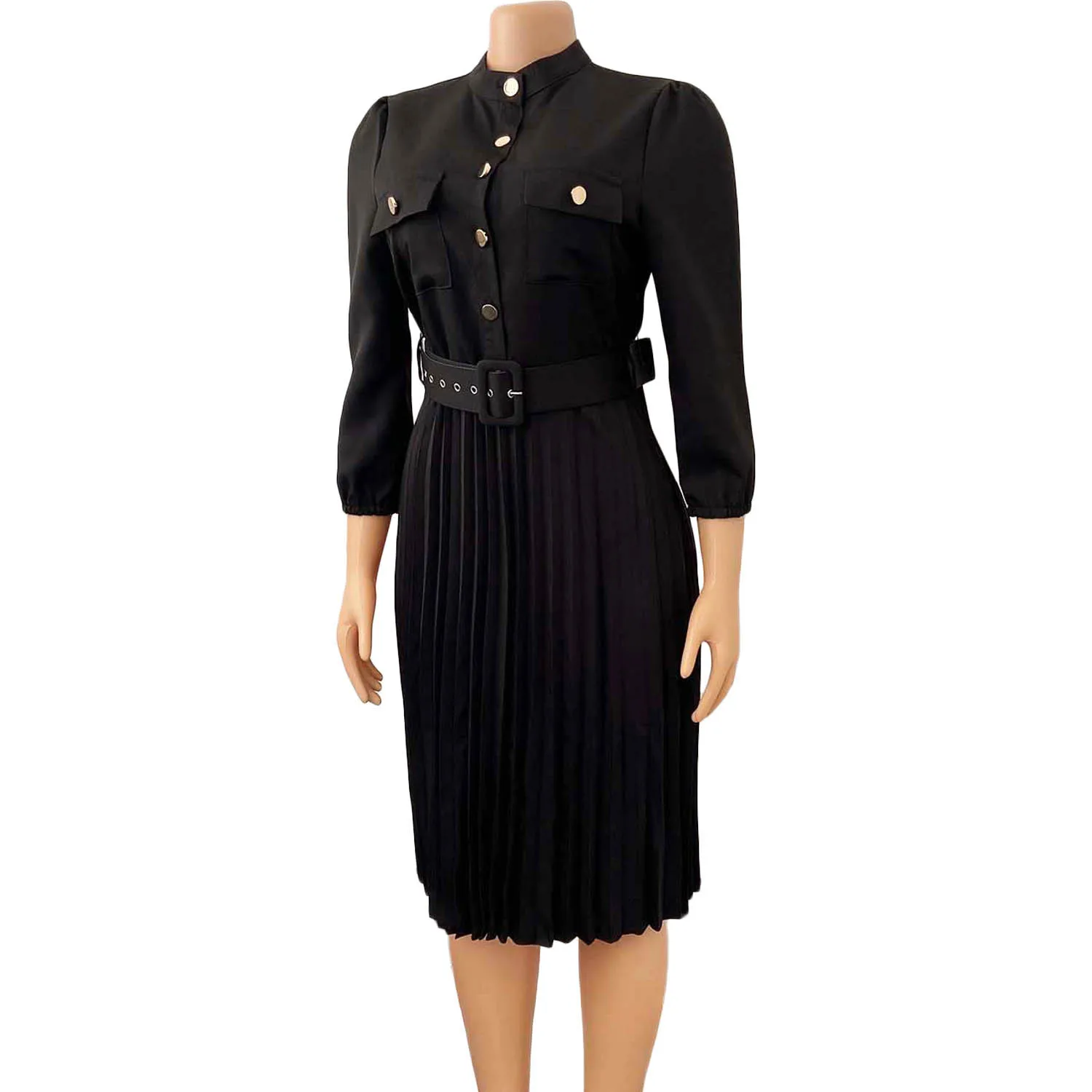 HGTE Women Long Sleeve Pleated Dresses with Pockets Waist Belt A Line Button Up Female Fashion Autumn Solid Color Oversize Lady