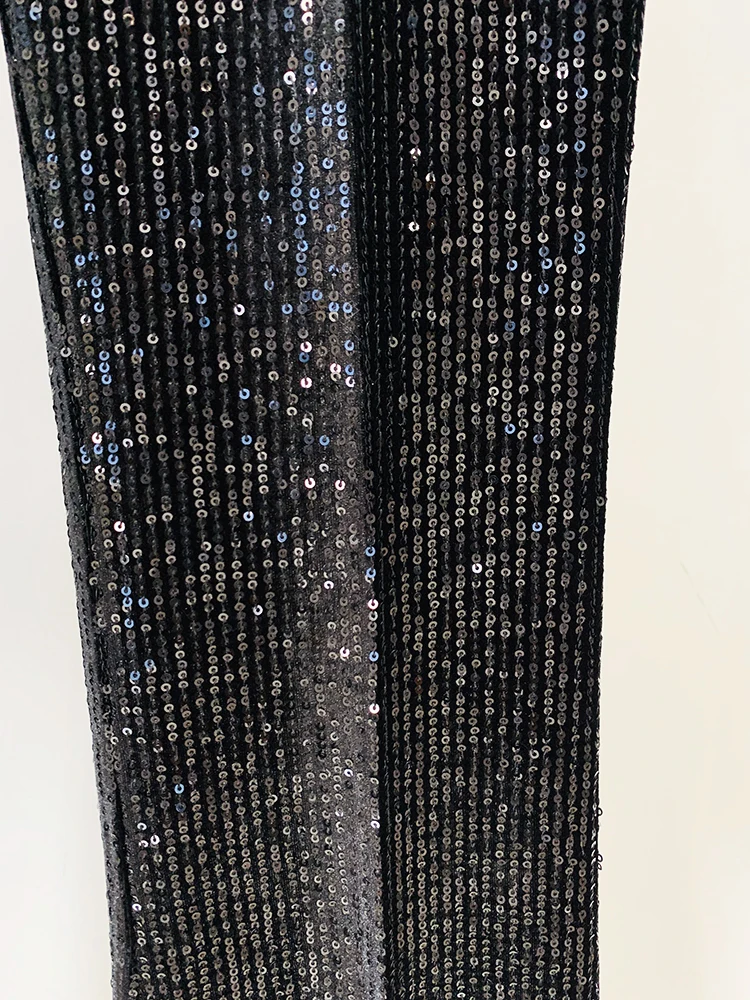HIGH STREET Newest 2024 Designer Fashion Trousers Women’s BlingBling Charming Sequin Wide Leg Long Pants