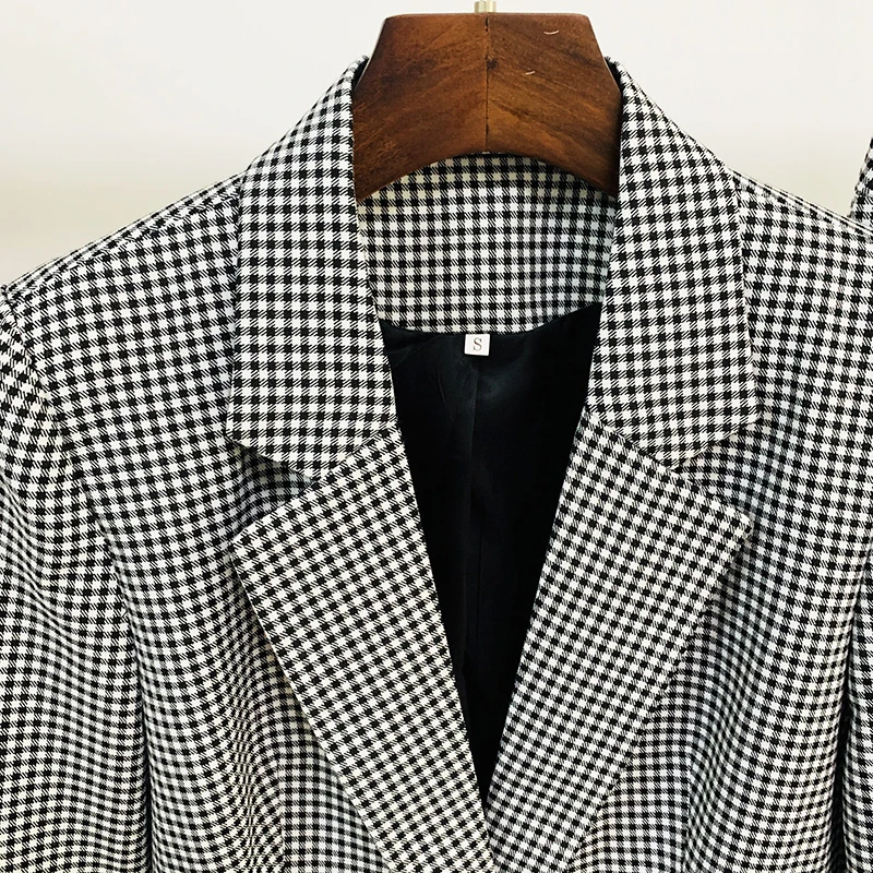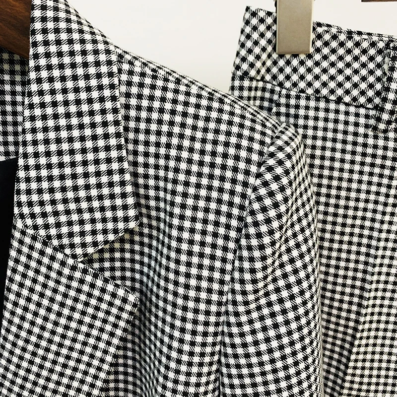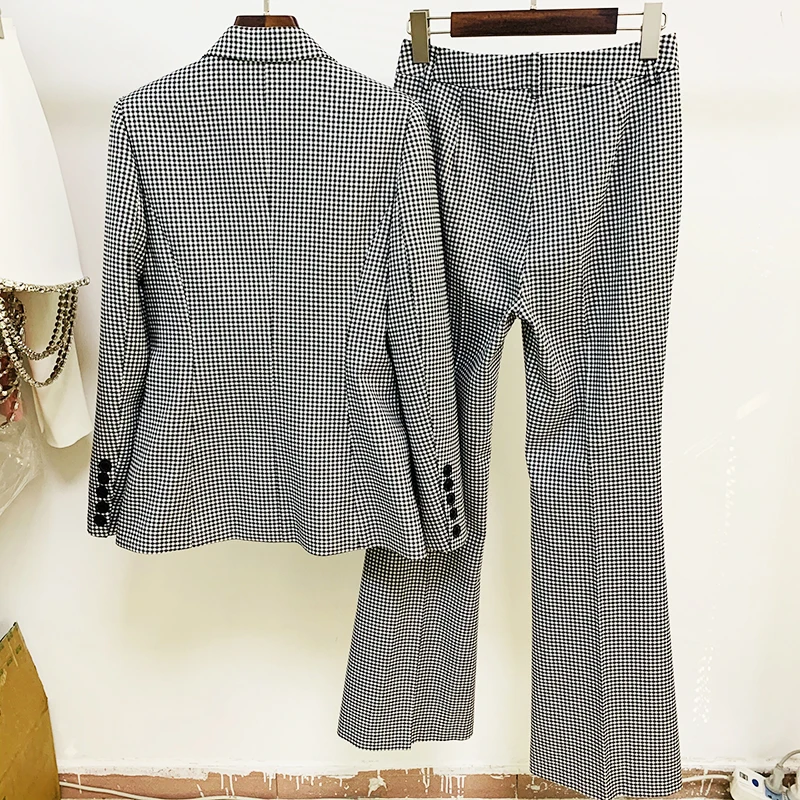 HIGH STREET Newest 2024 Designer Suit Set Women’s Career Style Single Button Plaid Blazer Flare Pants Suit