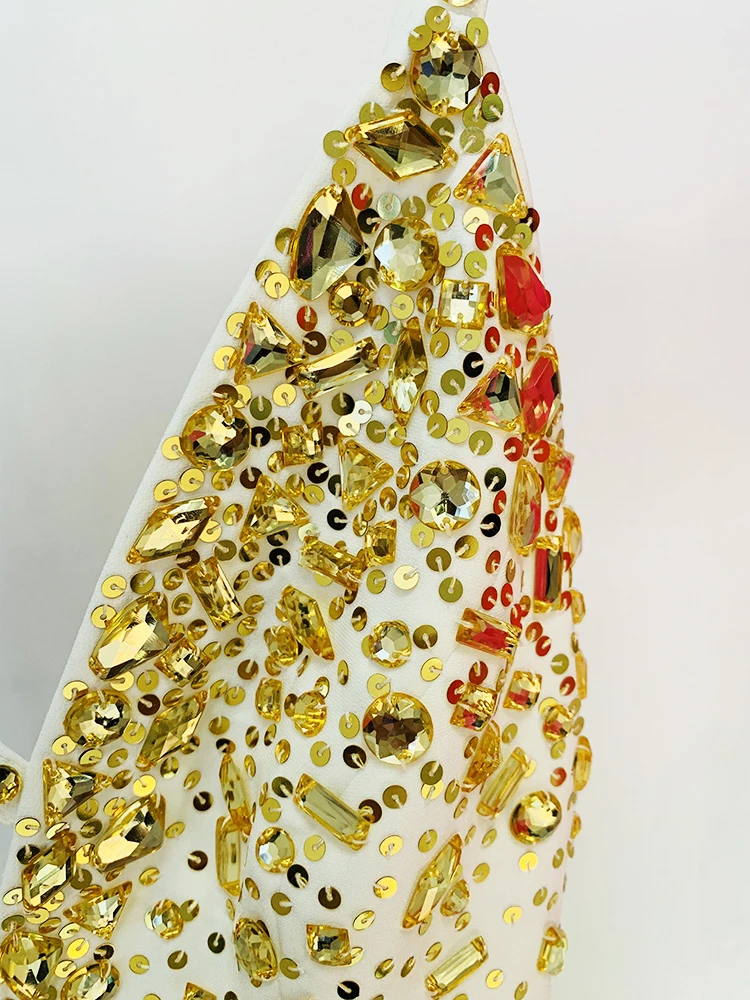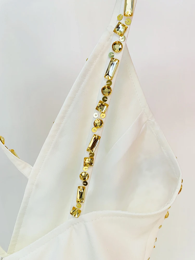 HIGH STREET Newest Fashion Summer 2024 Women’s Spaghetti Strap Stunning Strass Stone Didmonds Beading Straight Jumpsuit