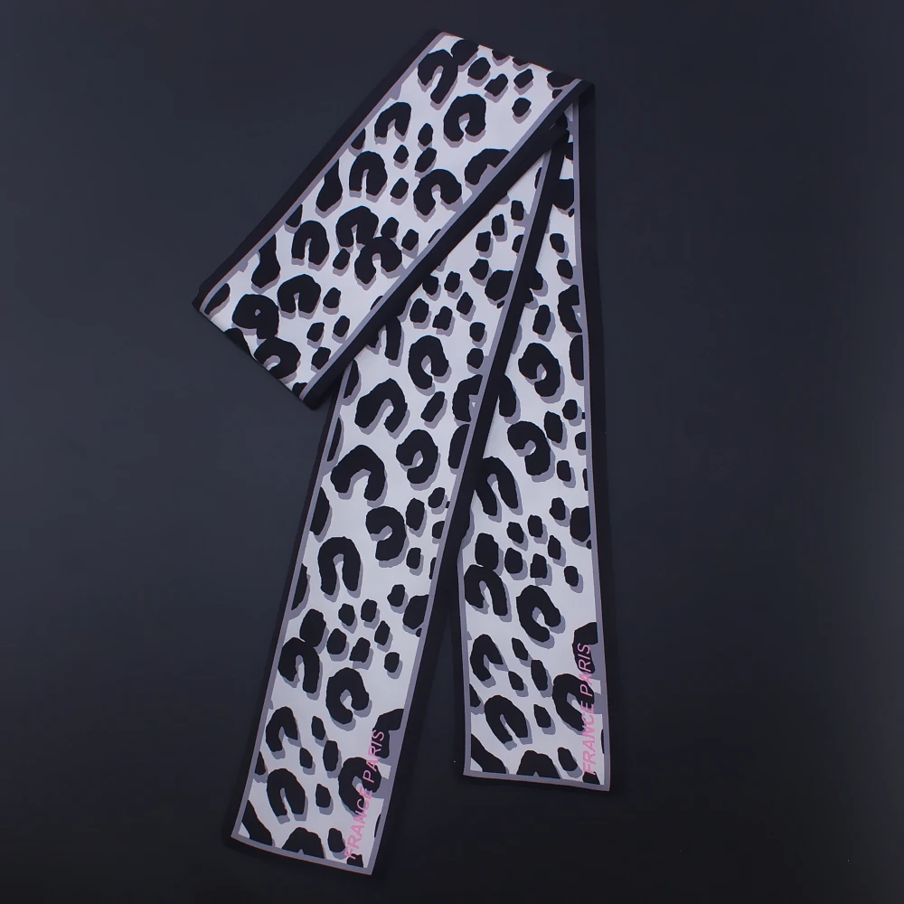 Hot Selling Leopard Print Woman Twill Silk Scarf 116cm*8cm Long Small Head Scarf Ladies Four Seasons Kerchief Bag Ribbons Tie