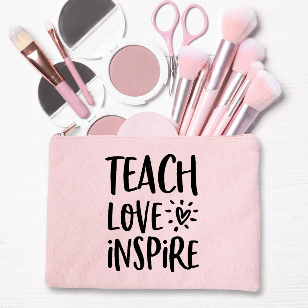 I Am A Teacher Canvas Pink Cosmetic Cases Bags Makeup Pouch Lipstick Organizers Back To School Teacher’s Gift Toiletry Bag