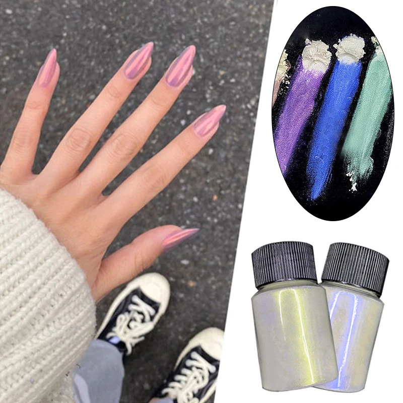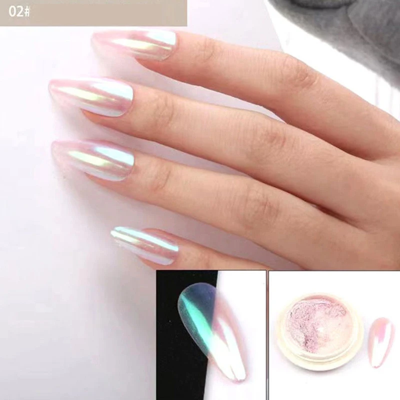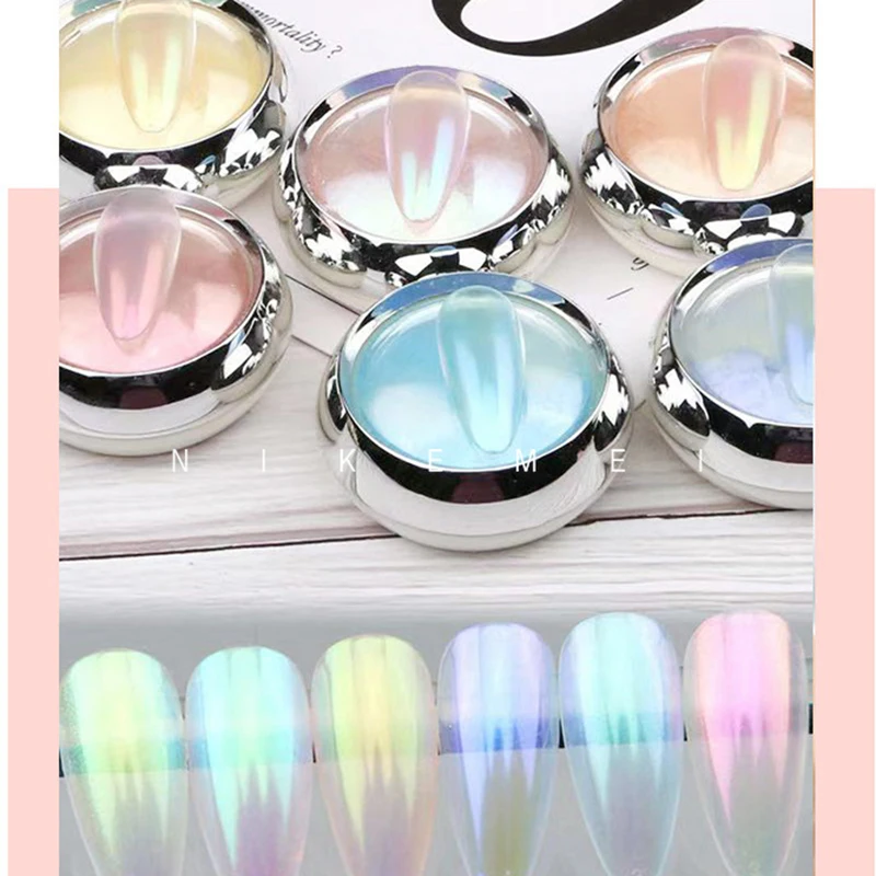 Ice Muscle Aurora Neon Glitter Mirror Nail Powder Pigment Pearl Nail Art Glitter Dust Chrome Aurora Blue Manicure Holographic