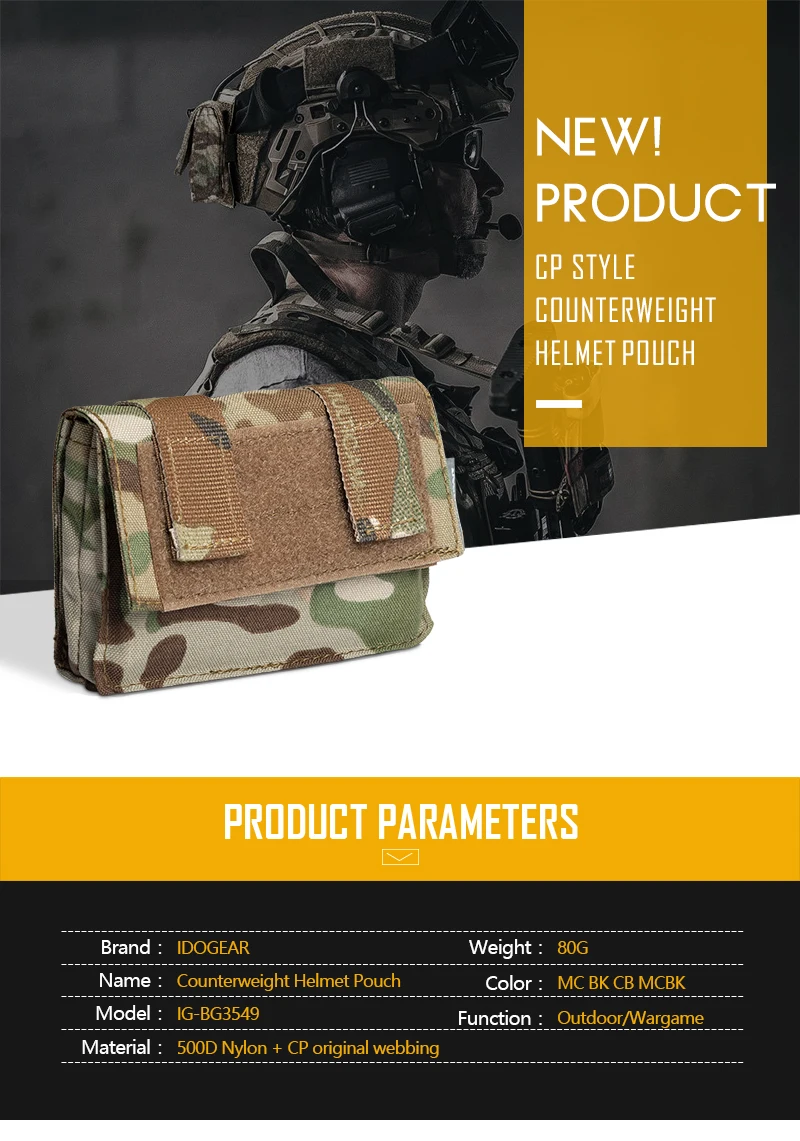 IDOGEAR Tactical FAST Helmet Utility Pouch Removable Rear Pouch NVG Counterweight Battery Pouch 3549