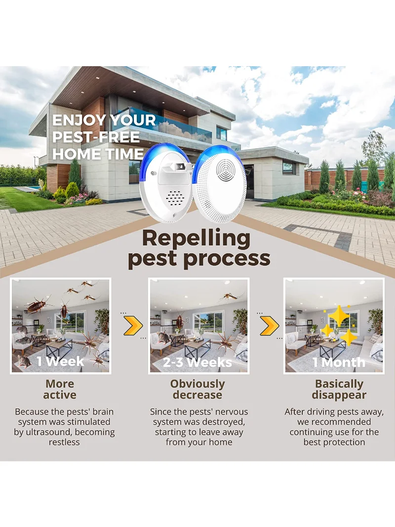 Indoor and outdoor pest control is suitable for home kitchens, etc. 110V-220V ultrasonic insect repellent with US/EU/UK plug