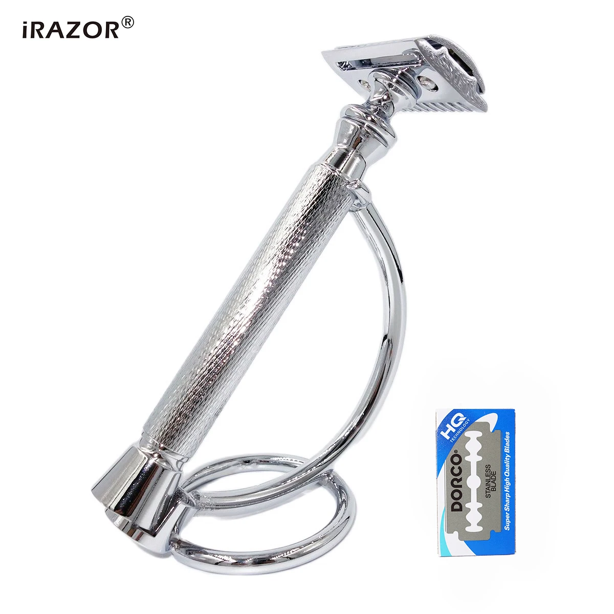 iRAZOR Professional Barber T-Shaped Manual Double Edge Safety Razor Shaving Machine Blades for Men Gift Set Grooming Accessories