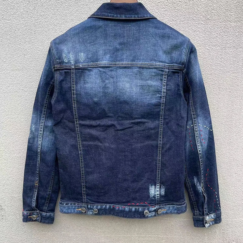 Italian starbags dsq1912 Men’s Denim Coat ground white Make Old wash splash paint patch Casual rock denim Jacket Coat for men