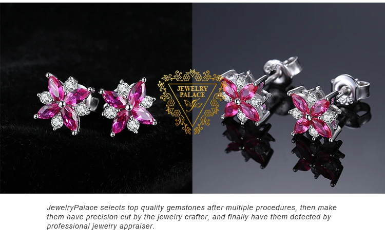 JewelryPalace Flower Cross Created Ruby 925 Sterling Silver Stud Earrings for Woman Statement Gemstone Jewelry Birthday Gift