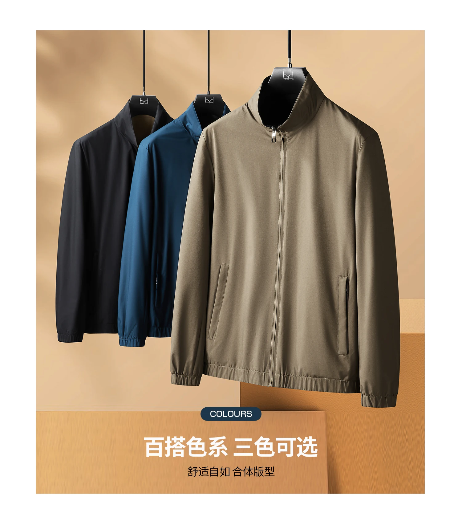 JSBD reversible reversible Fall Business All-in-one weatherproof stand-up collar jacket with tencel wool lining