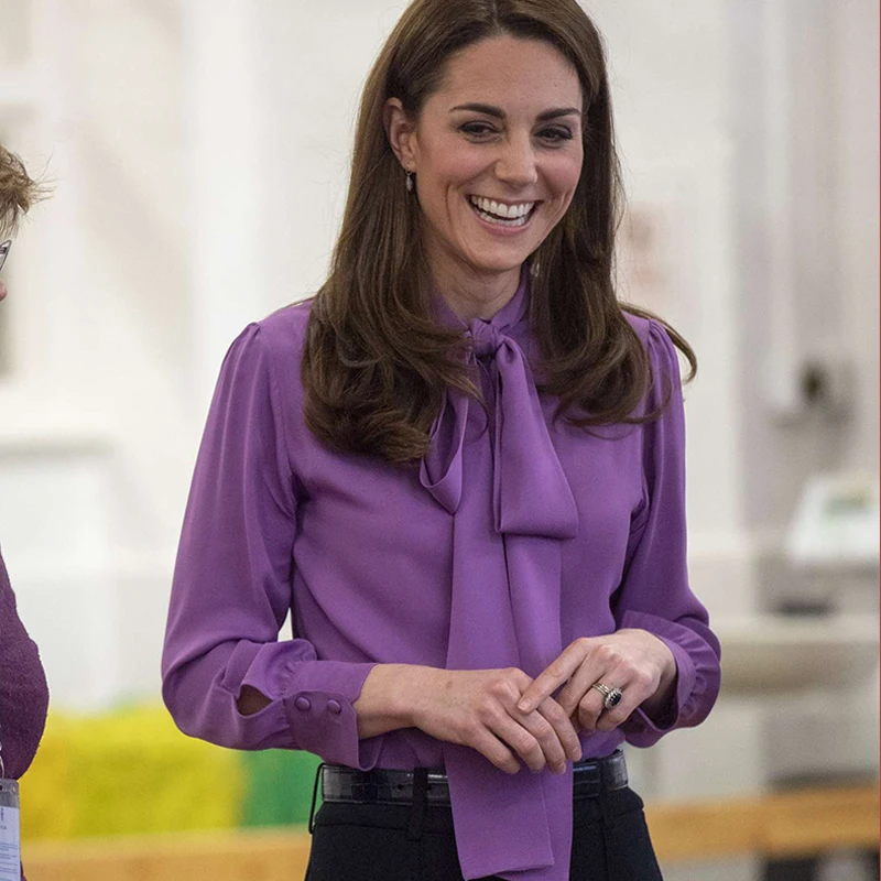 Kate Middleton Princess purple Blouses elegant Bow designer long sleeve OL shirts