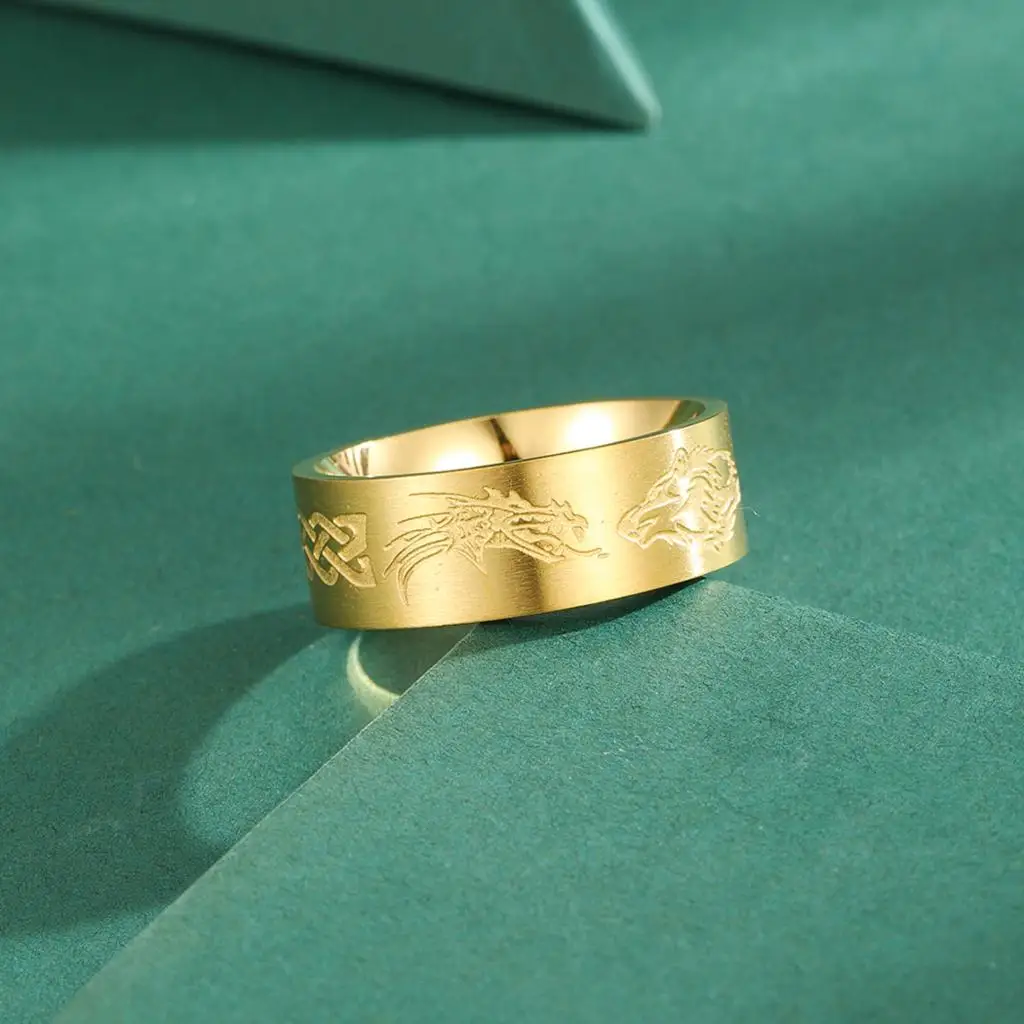 Kinitial Stainless Steel Wolf Ring Celtic Dragon and Wolf Ring Wedding Rings Tungsten Carbide Celtic Dragon and Wolf Men’s Gifts