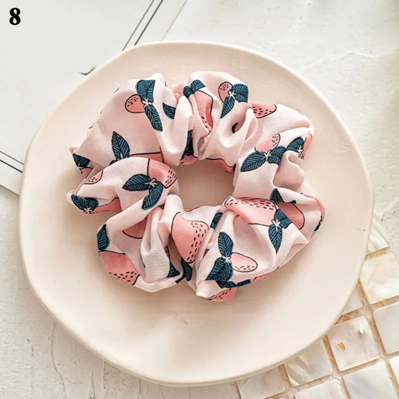 Korea Sweet Cute Avocado Fruit Print Floral Scrunchies For Women Hair Accessories Elastic Hair Rubber Band Hair Rope Hair Ring