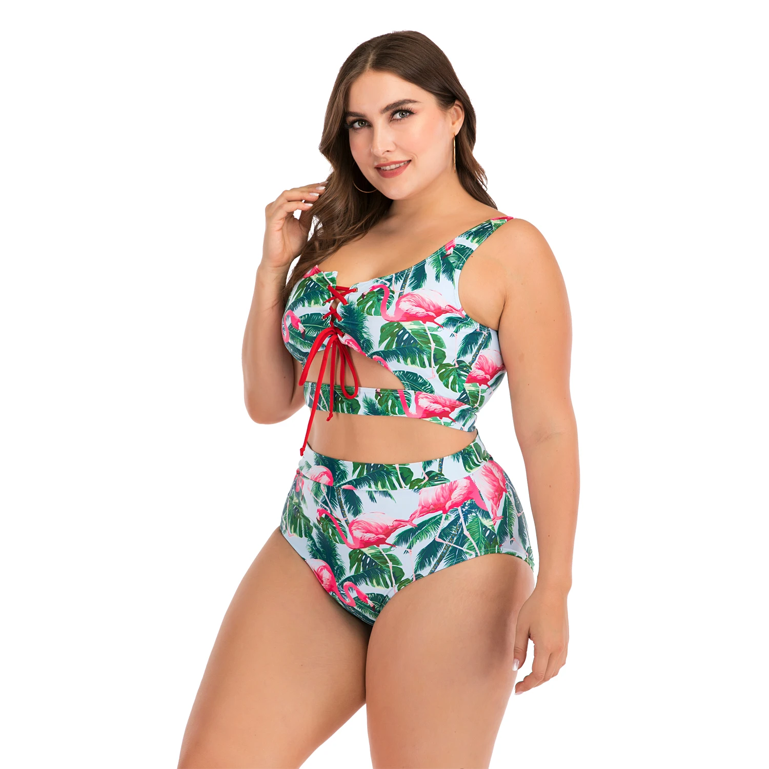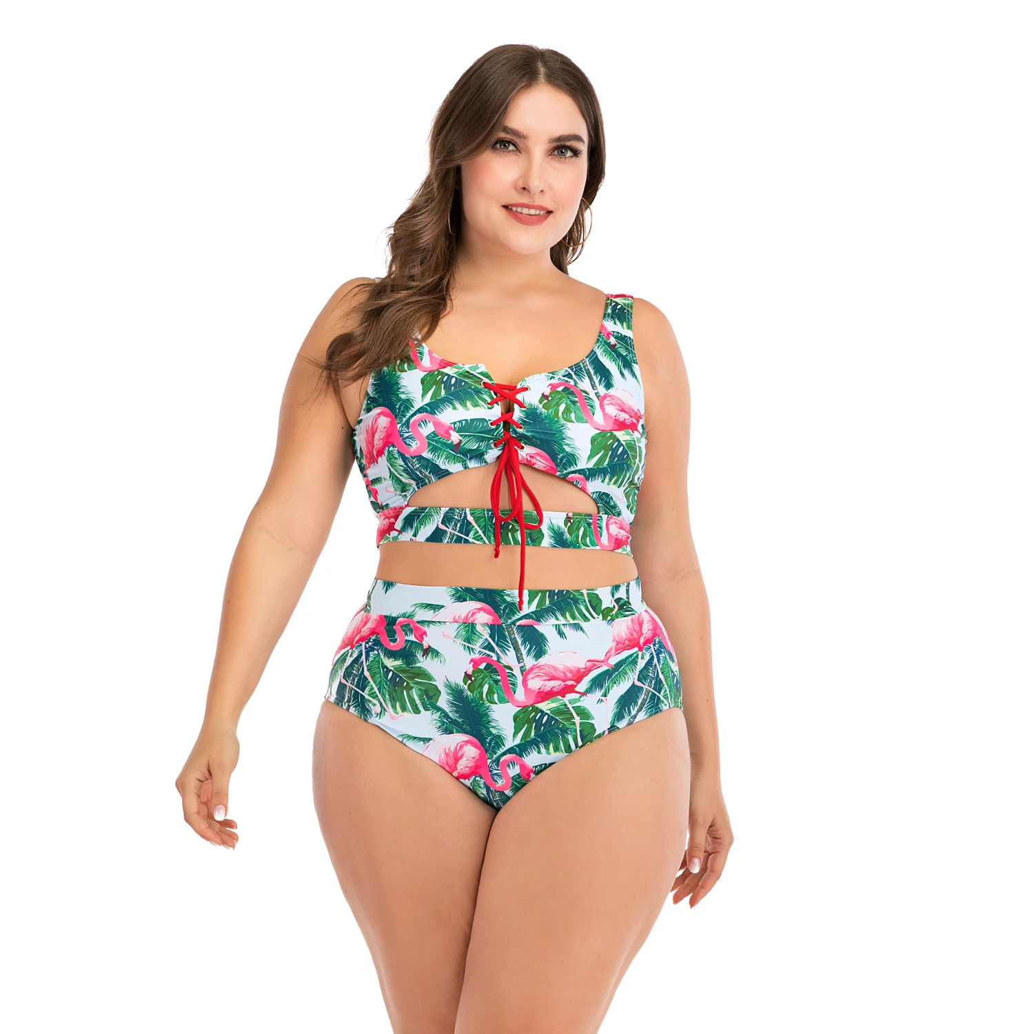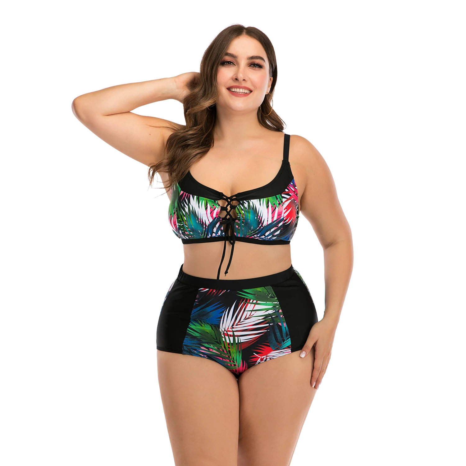 L-4XL Plus Size Bikini Set Swimsuit Women High Waisted Oversize Swimwear Two Piece Tankini Suits Sexy Bathing Suit Beachwear