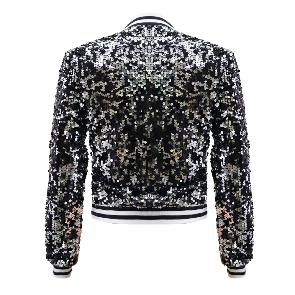 Ladies Fall And Winter Stunning Fashion Jacket Street Solid Color Sequins Long Sleeve Zipper Slim Jacket