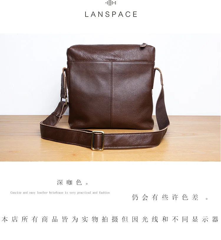 LANSPACE men’s leather single shoulder bag fashion brand messenger bag first layer leisure cow leather men’s bag