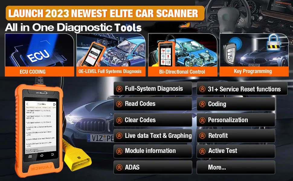 2024 New Arrival- LAUNCH Elite OBD2 Scanner, OE-Level ALL Systems Automotive Scan Tool, Bi-directional Control (Active Test) 31+ Services, ECU Coding, Key Programming, AUTO VIN, One click WiFi Update, Battery Registration Tool