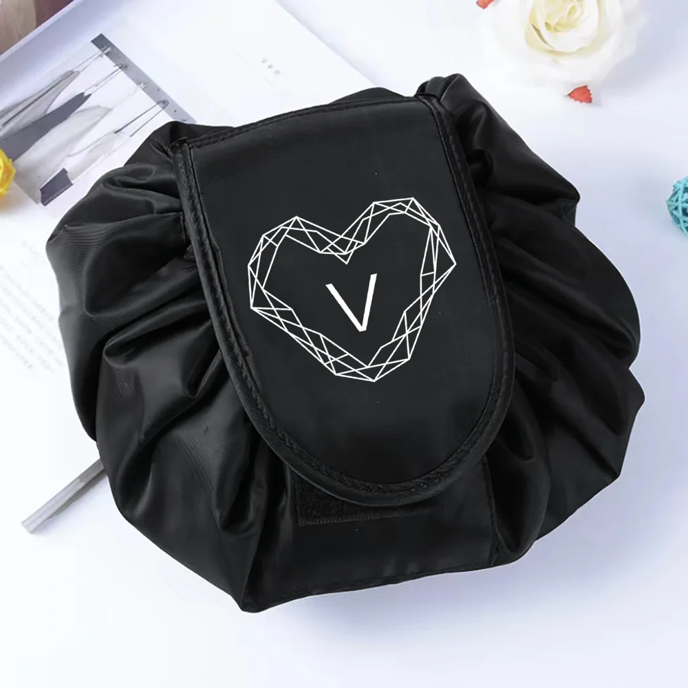 Lazy Cosmetic Bag Suitable Diamond Letter Print A B Trave Can Store Large-Capacity Drawstring Organizer Makeup Bag Toiletry Box