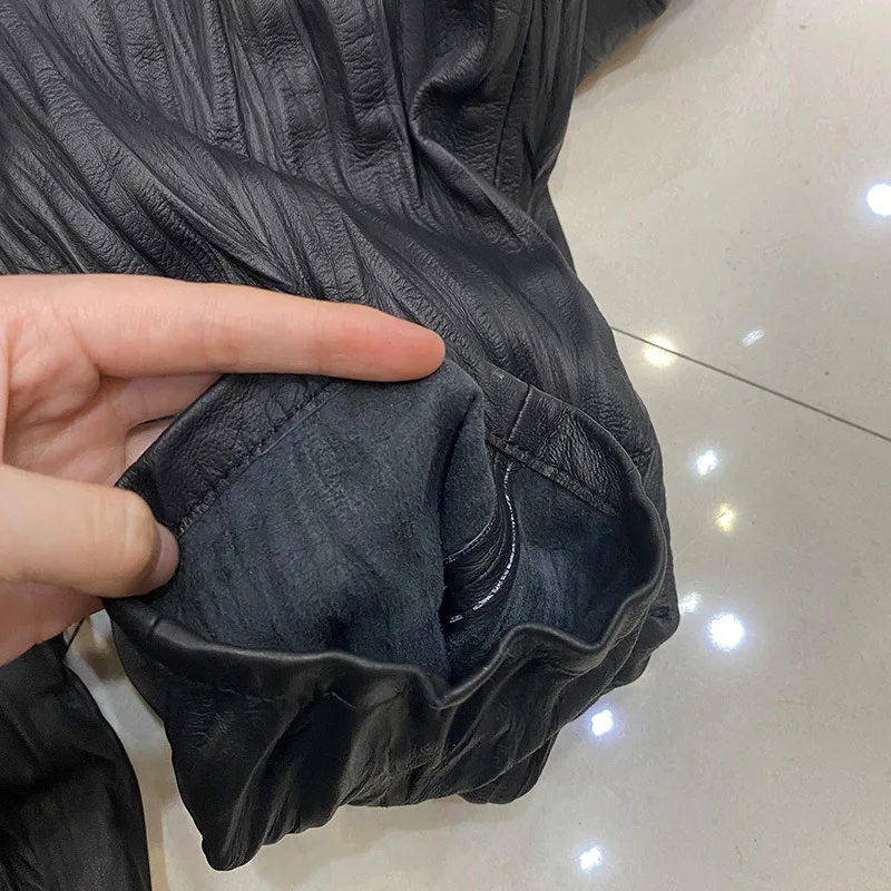 Leather Pants Women 2022 Quality Sheepskin Black Pleated Outer Wear