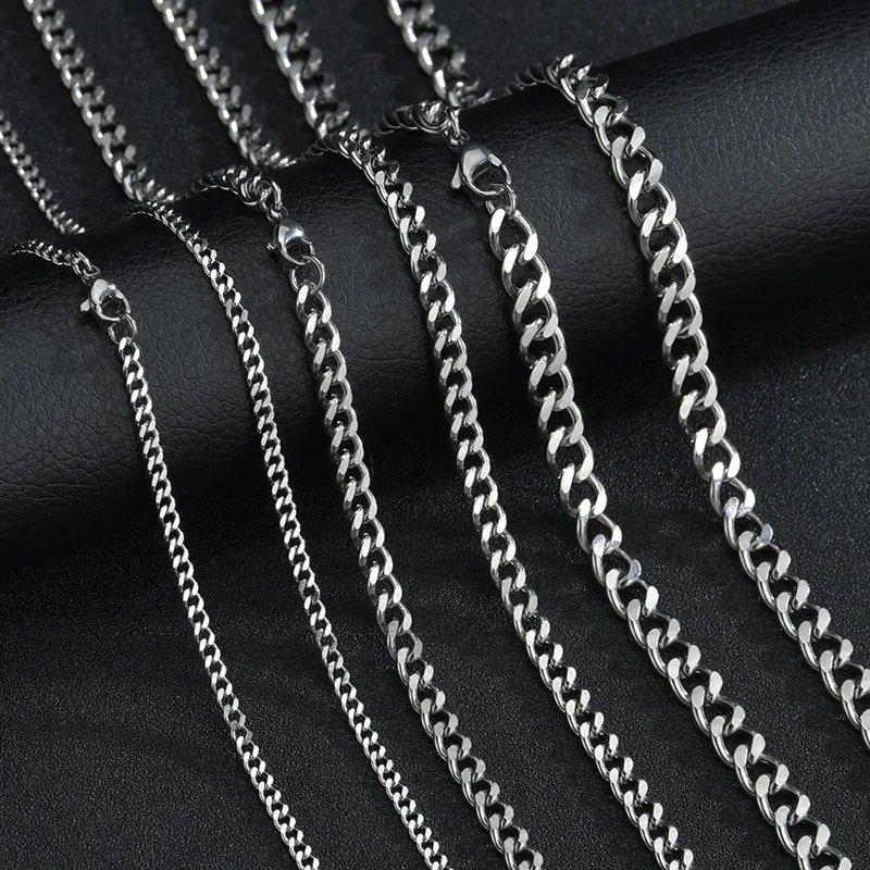 Letdiffery Fashion Width 3mm/5mm/7mm Cuabn Chain Necklace Stainless Steel Women Men Punk Chain Necklaces Wholesale ing