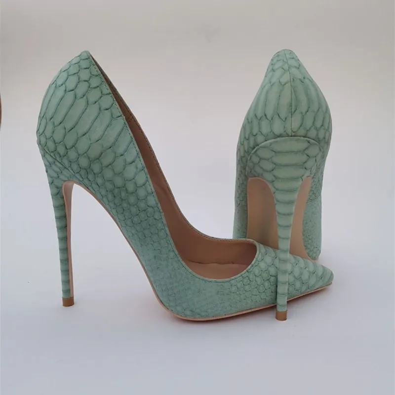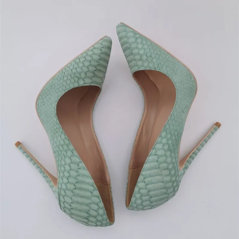 light green snake pattern 8cm-12cm stiletto shallow mouth pointed sexy single shoes party nightclub models women’s shoes