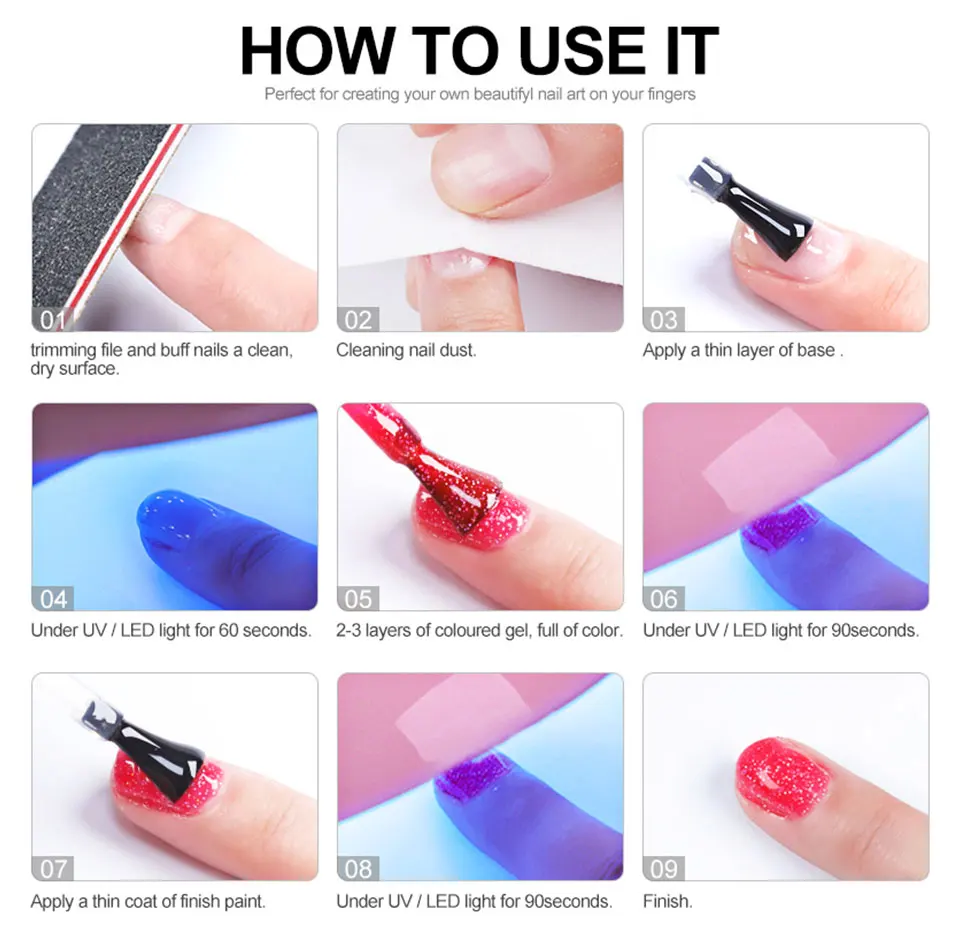 It is quick drying with any UV Light. Long lasting for at least 2-3 weeks, fantastic and super bright nails for you.
