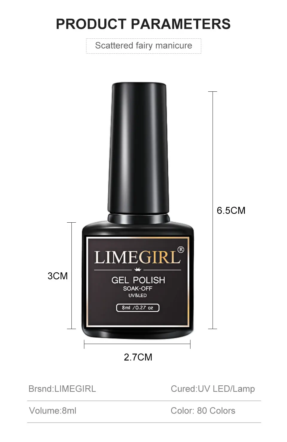 Limegirl Fashion Gel Nail Polish Semi Permanent Sequins Flakes Shiny Glossy UV LED Nails Art Design Gels Varnish Lacquer 8ml