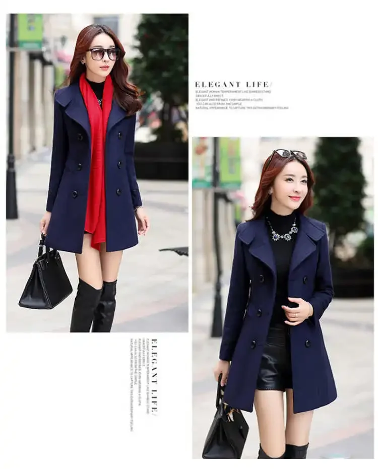 LKSK Plus Size Autumn Winter Jacket Womens Double Breasted Solid Color Coat Korean Slim Female Woolen Jacket Womens