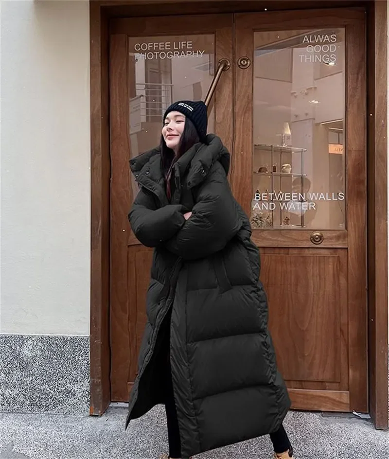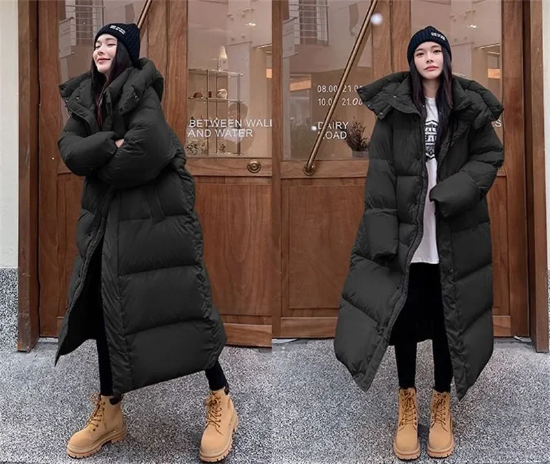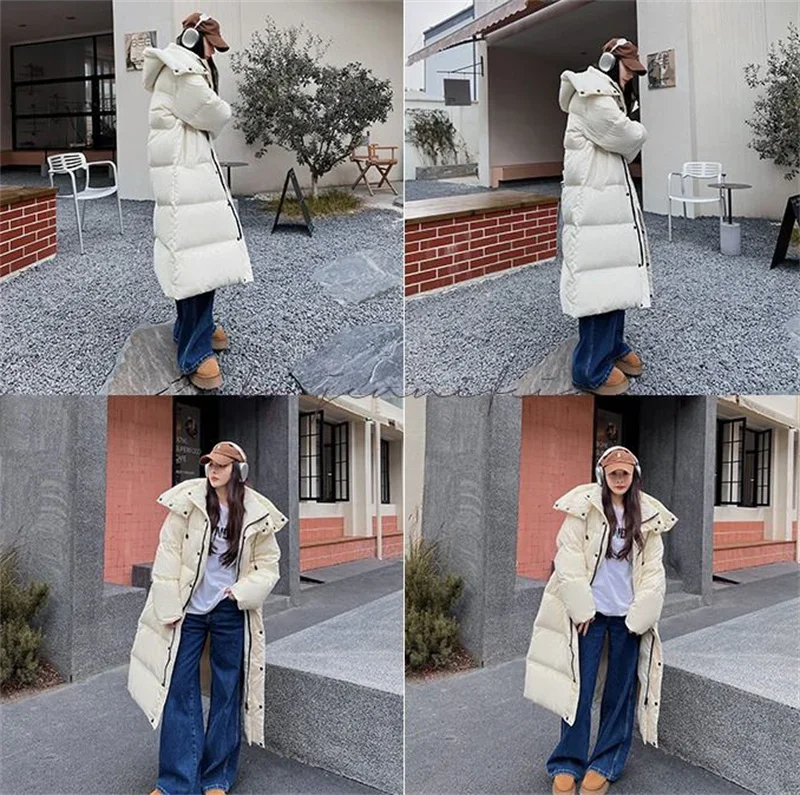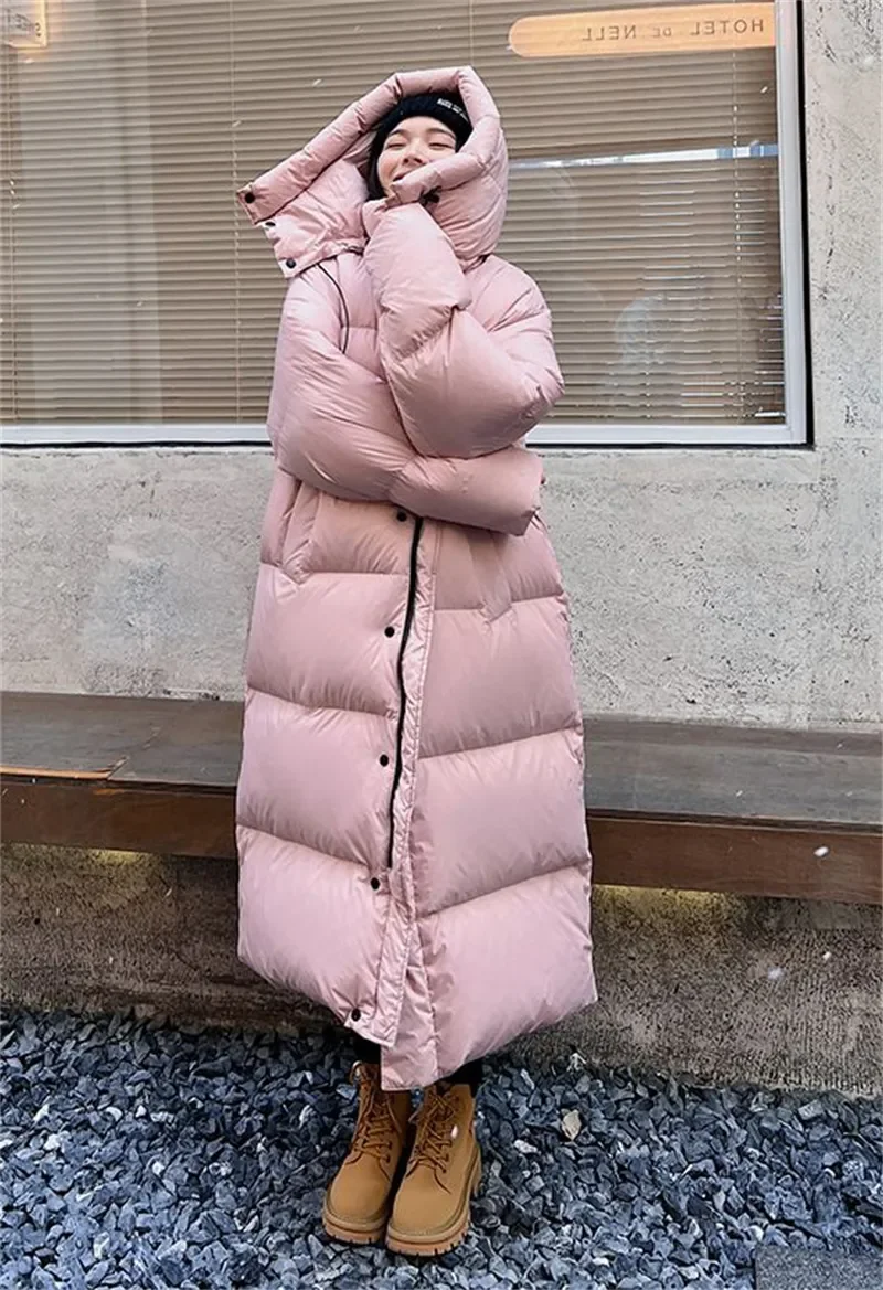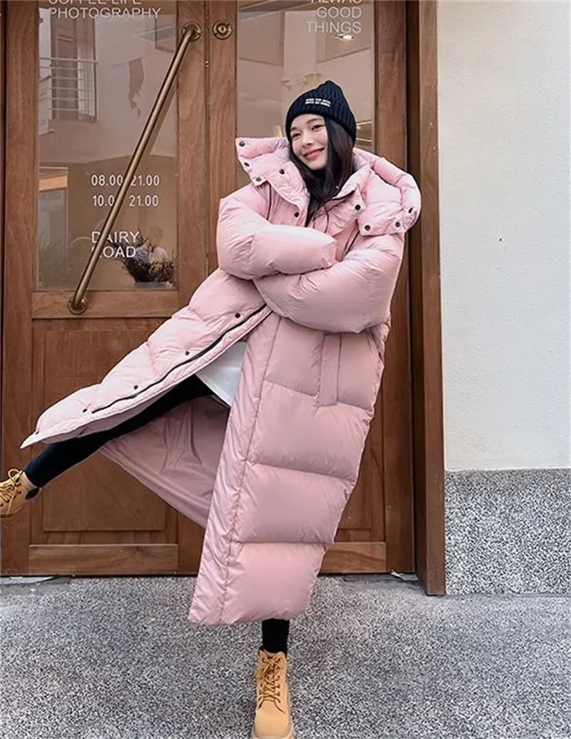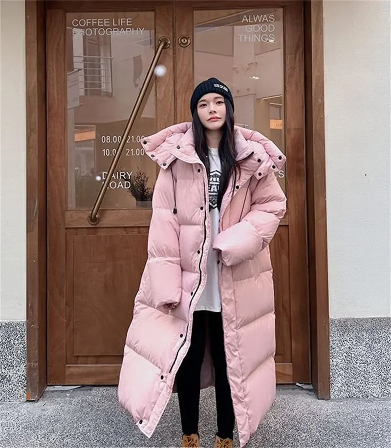 LKSK Warm Winter Pink Hooded Long Parka Thick Windproof Parka Casual Snow Coat Cotton Pad Women’s New Style