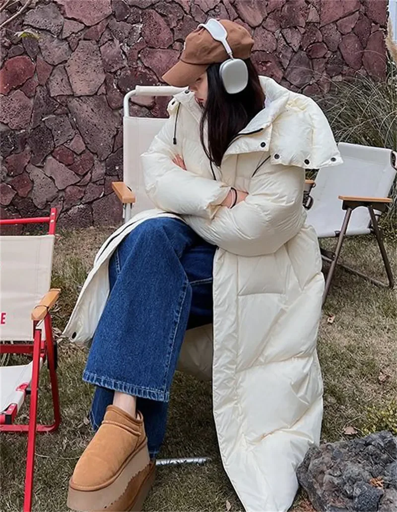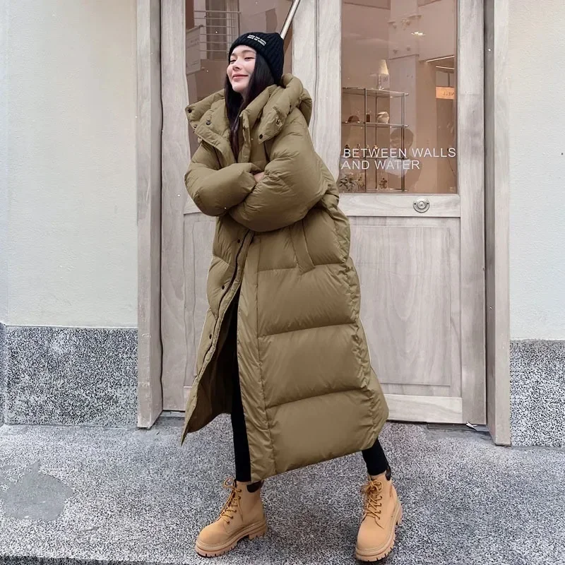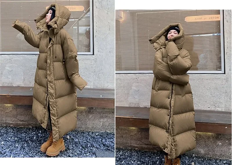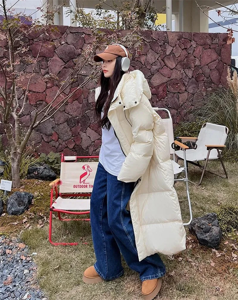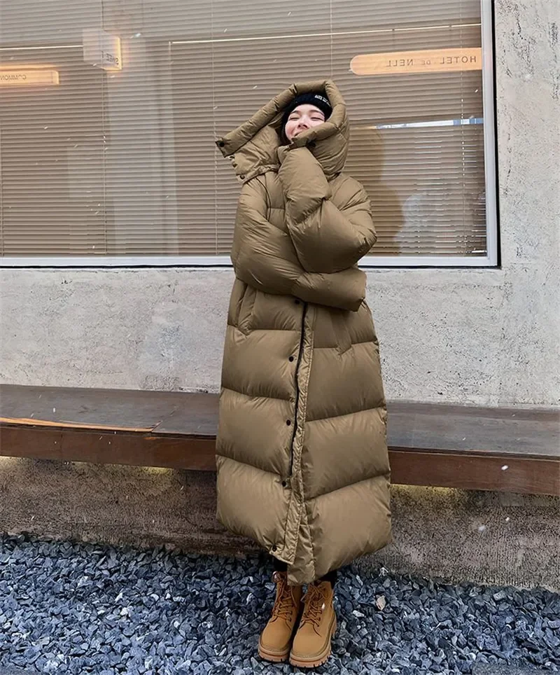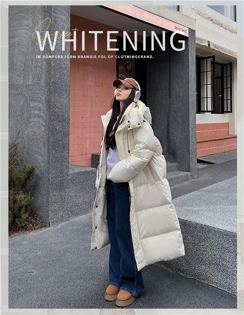 LKSK Warm Winter Pink Hooded Long Parka Thick Windproof Parka Casual Snow Coat Cotton Pad Women’s New Style