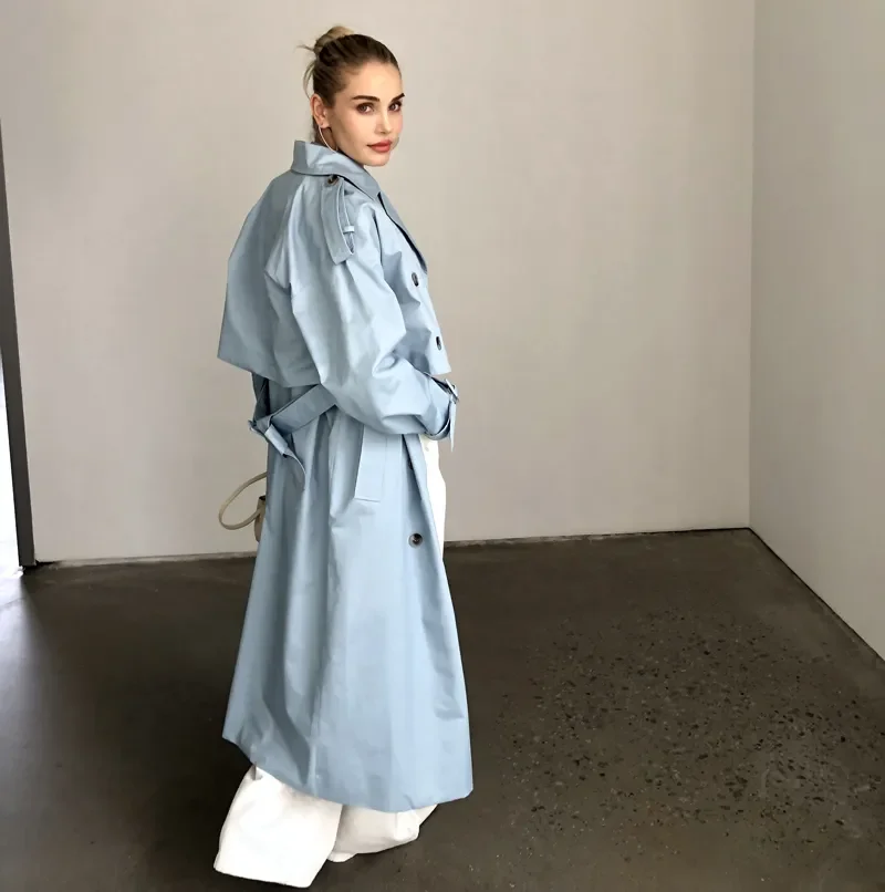 LKSK Women Fashion Fall / Autumn 2 piece long trench coat Female outerwear blue Khakiladies coatladies coat
