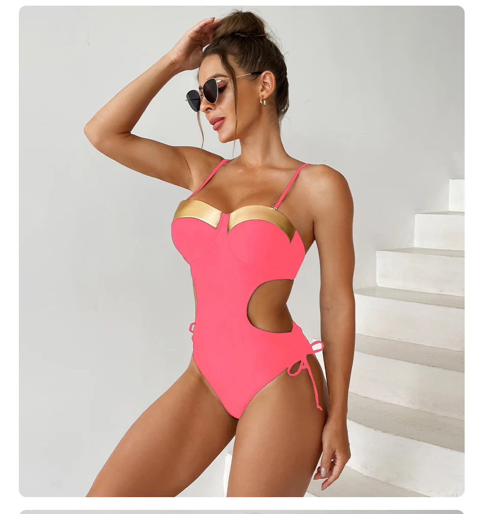 LUKITAS Women One-piece Solid Color Swimsuit Hanging S exy Swimsuit Bathing Suits Summer Beach Wear Swim Suit Plus Size S-XXL