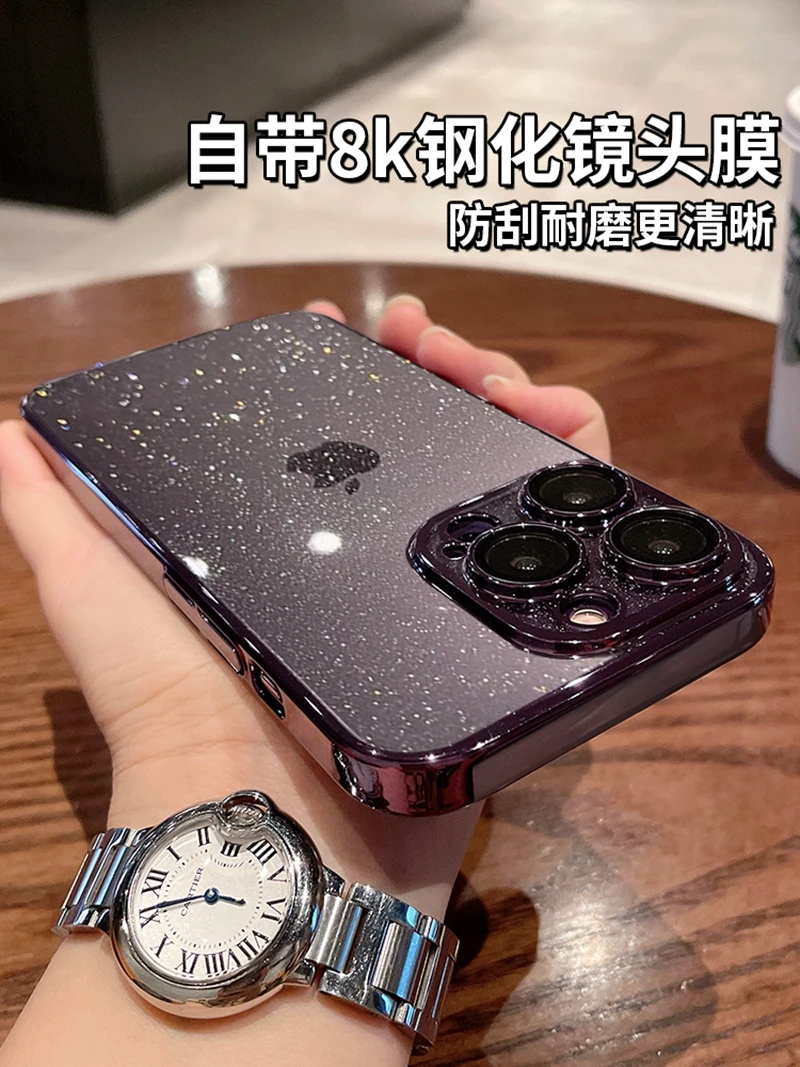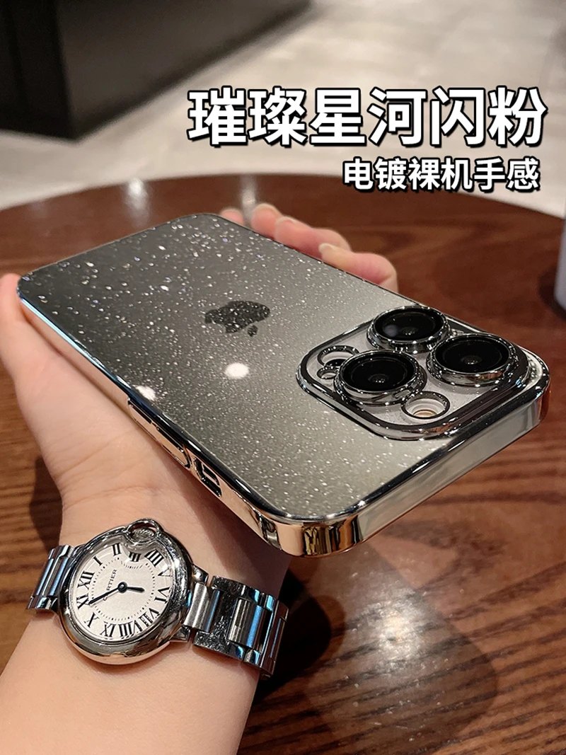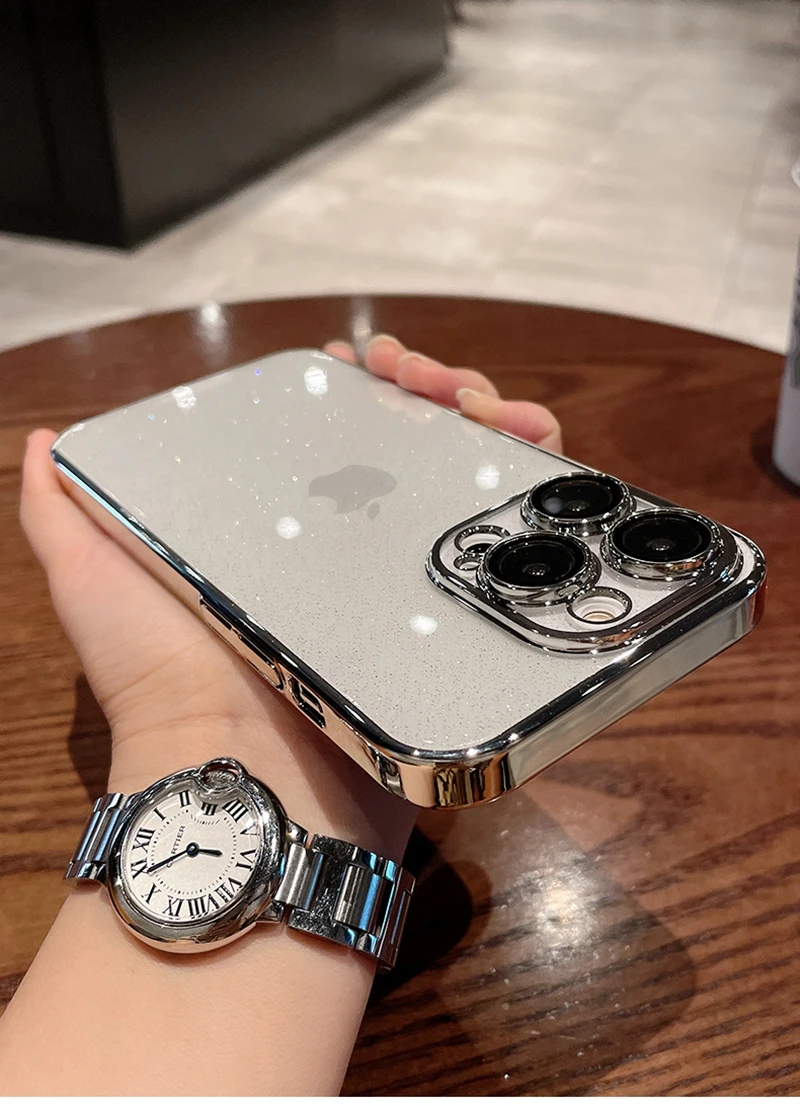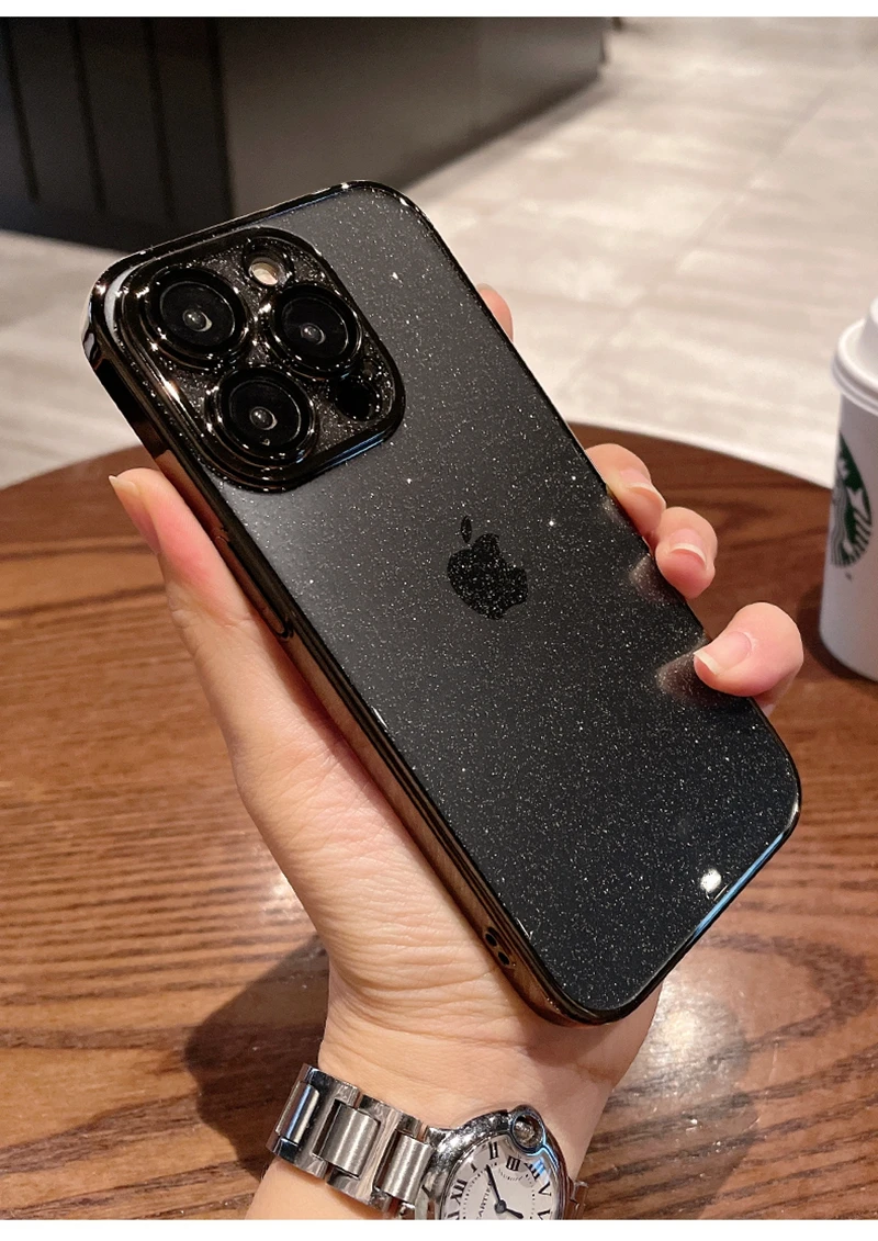 Luxury Transparent Glitter Phone Case For iPhone 11 12 13 14 15 Pro Max Plus Electroplated Bumper Clear Shockproof Cover