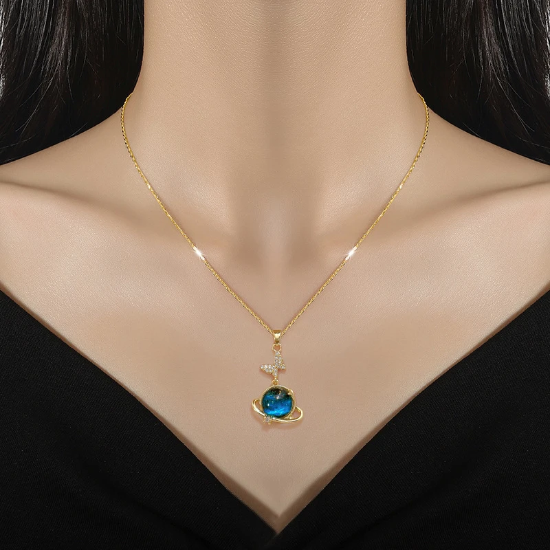Luxury Zircon Planet Star Pendant Necklace for Women Girls Fashion Steel Chain Butterfly Moon Heart Choker Chain Wedding Jewelry