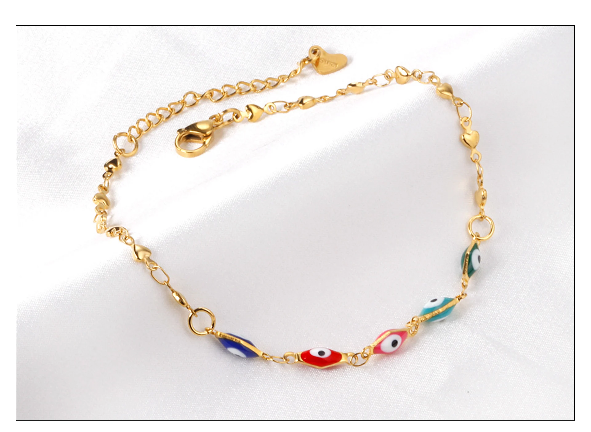 LUXUSTEEL Colorful Evil Eye Anklets For Women Girls Stainless Steel Bohemian Turkish Ankle Bracelet Summer Beach Jewelry