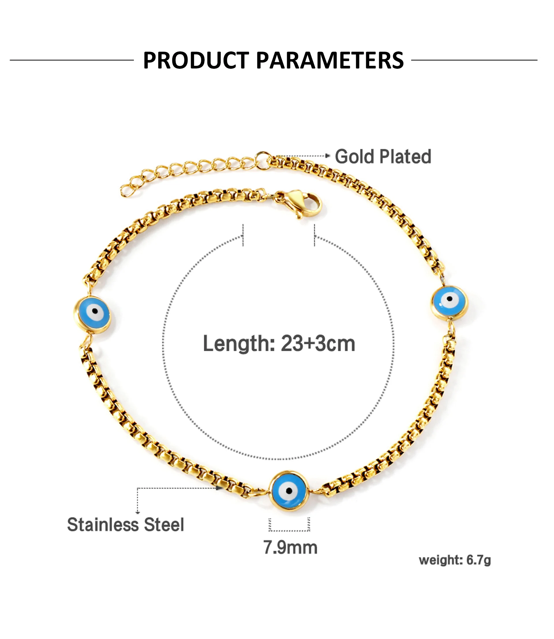 LUXUSTEEL Lucky Turkish Evil Eyes Ankle Bracelet For Women Box Link Leg Chain Stainlesss Steel Waterproof Summer Accessories