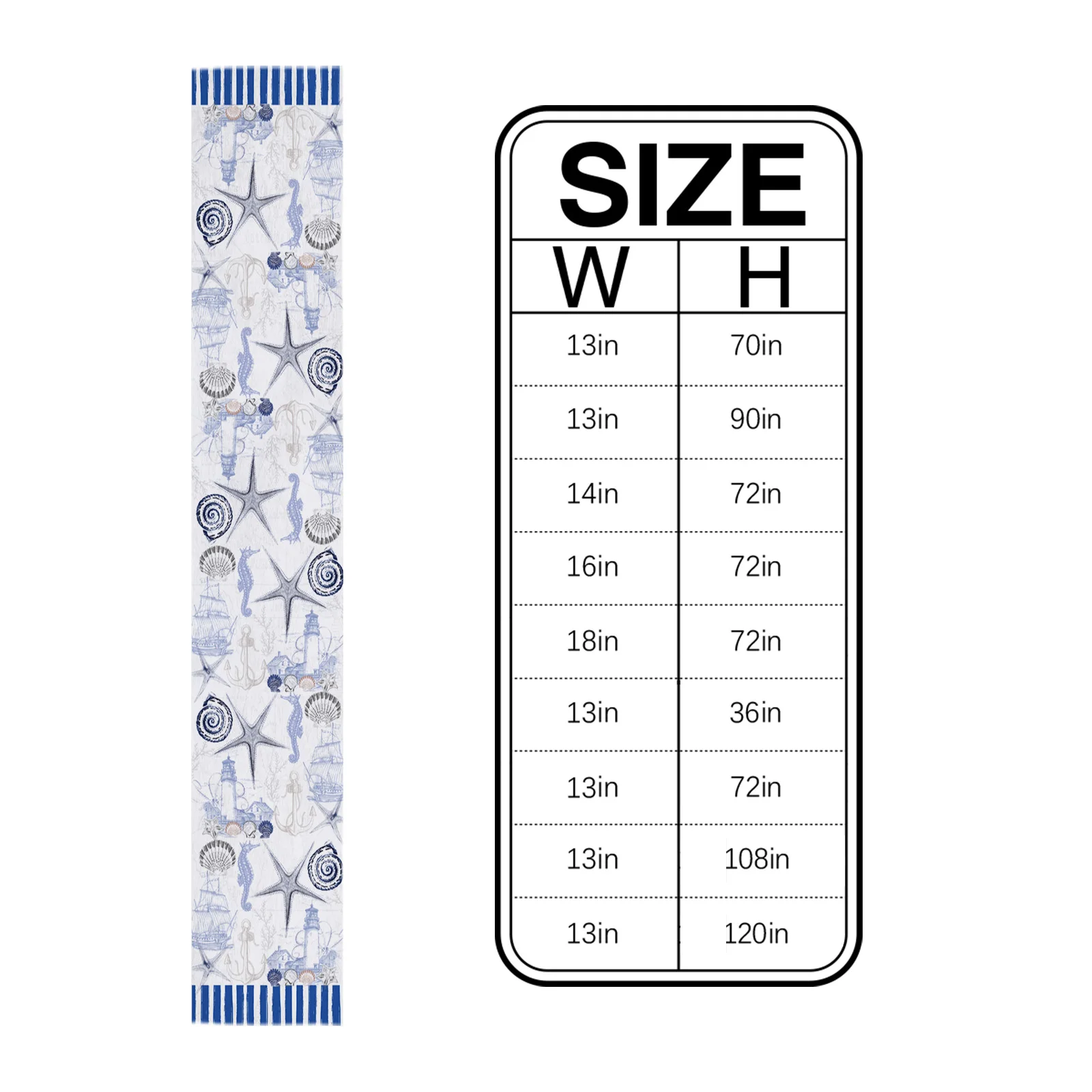 Marine Stripes Ocean Shells Starfish Lighthouse Anchor Table Runner Home Wedding Table Mat Centerpieces Decor Dining Tablecloth