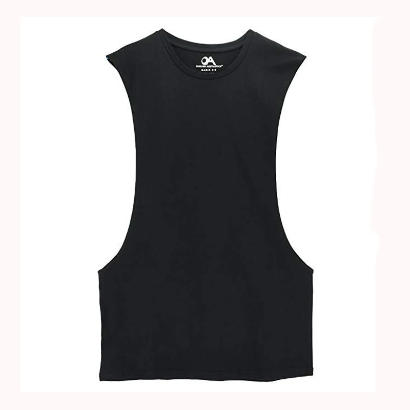 Men’s Fitness Sleeveless Vest With Extreme Dropped Armhole Crew Neck Regular Fit Shirts Tank Tops