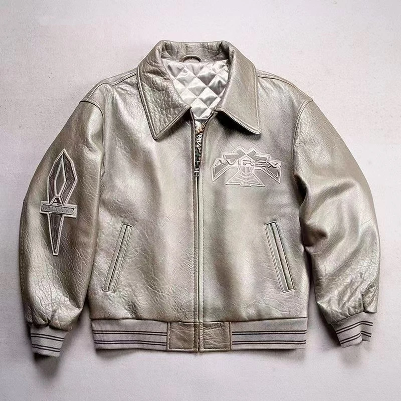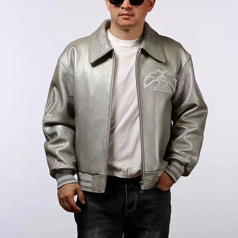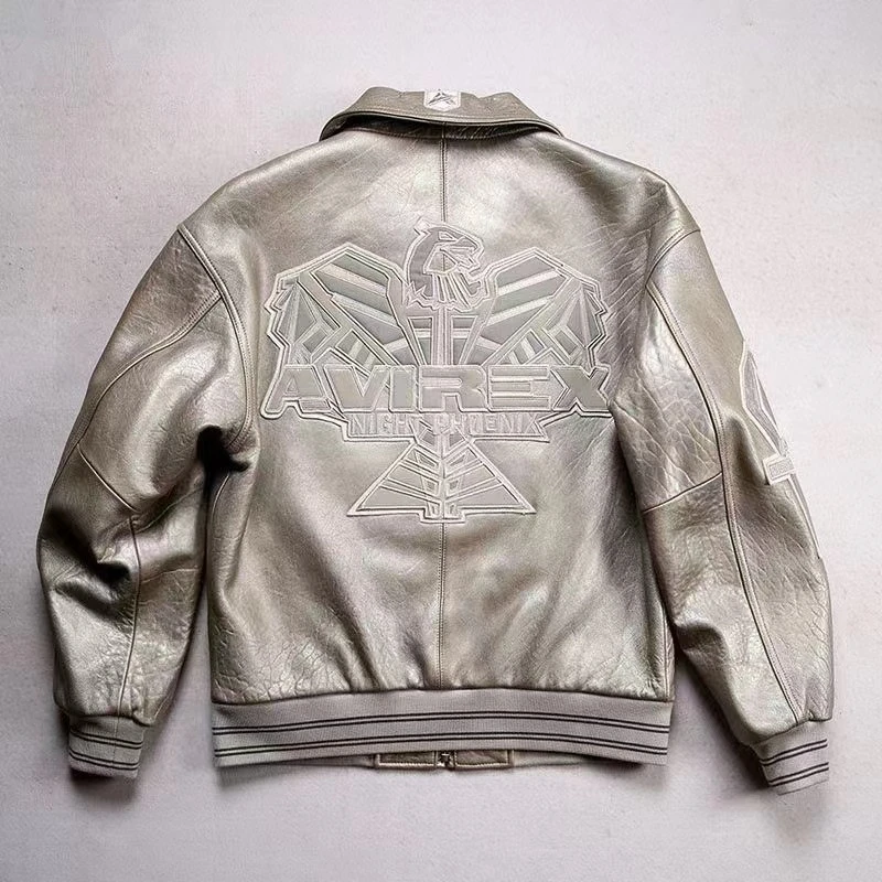 Men’s Italy Lamb Sheep Leather Jacket Large Size Twin Dragons Vintage Classic Soft Coat