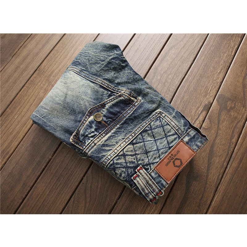 Men’s Jeans on Alibaba 30000Products.com Hot selling Italian Design Plaid Embroidered Punk Style Men’s pants Medium Washed Waist Casual