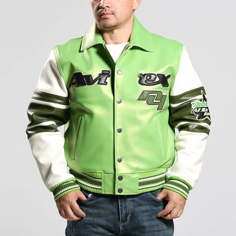 Men’s Real Sheep Leather Jacket American Size Classic Vintage Basketball Daily Coat
