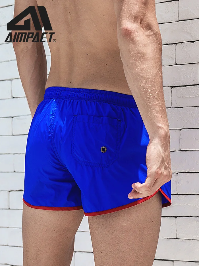 Mens Run Workout Fast Dry Fitness Beach Shorts Swimwear Bathing Suit Solid Color Shorts with Adjustable Drawstring by AIMPACT