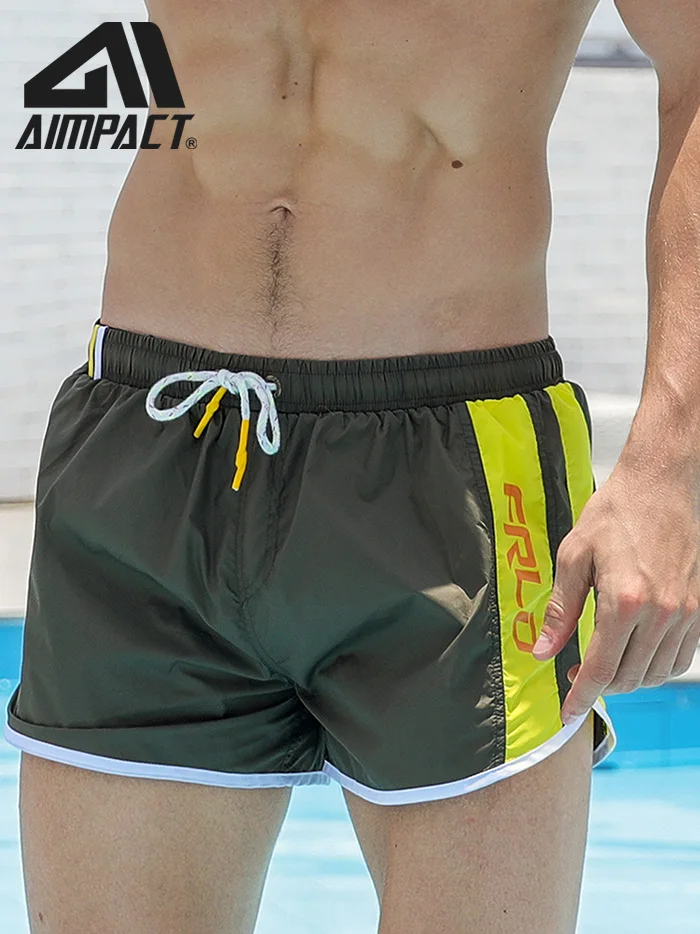 Mens Run Workout Fast Dry Fitness Beach Shorts Swimwear Bathing Suit Solid Color Shorts with Adjustable Drawstring by AIMPACT AM2262