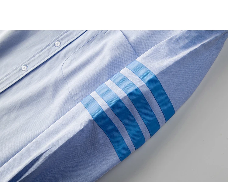 Men’s Shirt High Quality 4-Bar Blue Stripes Clothing Casual Oxford Top Women Korean Fashion Formal Harajuku Blue Shirts