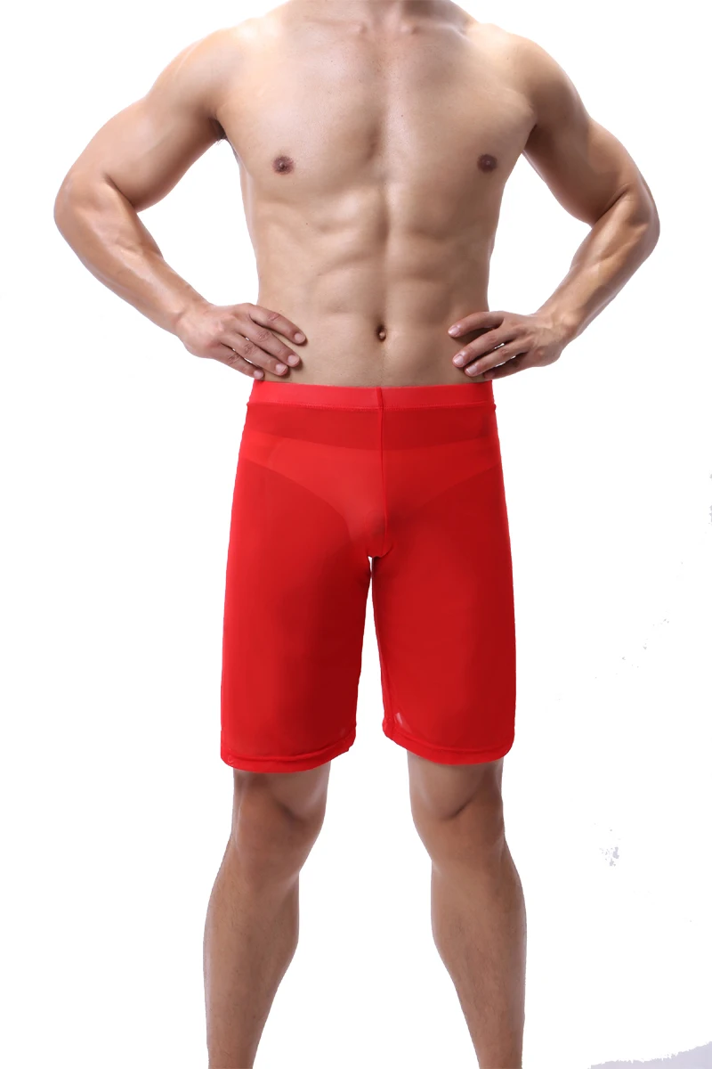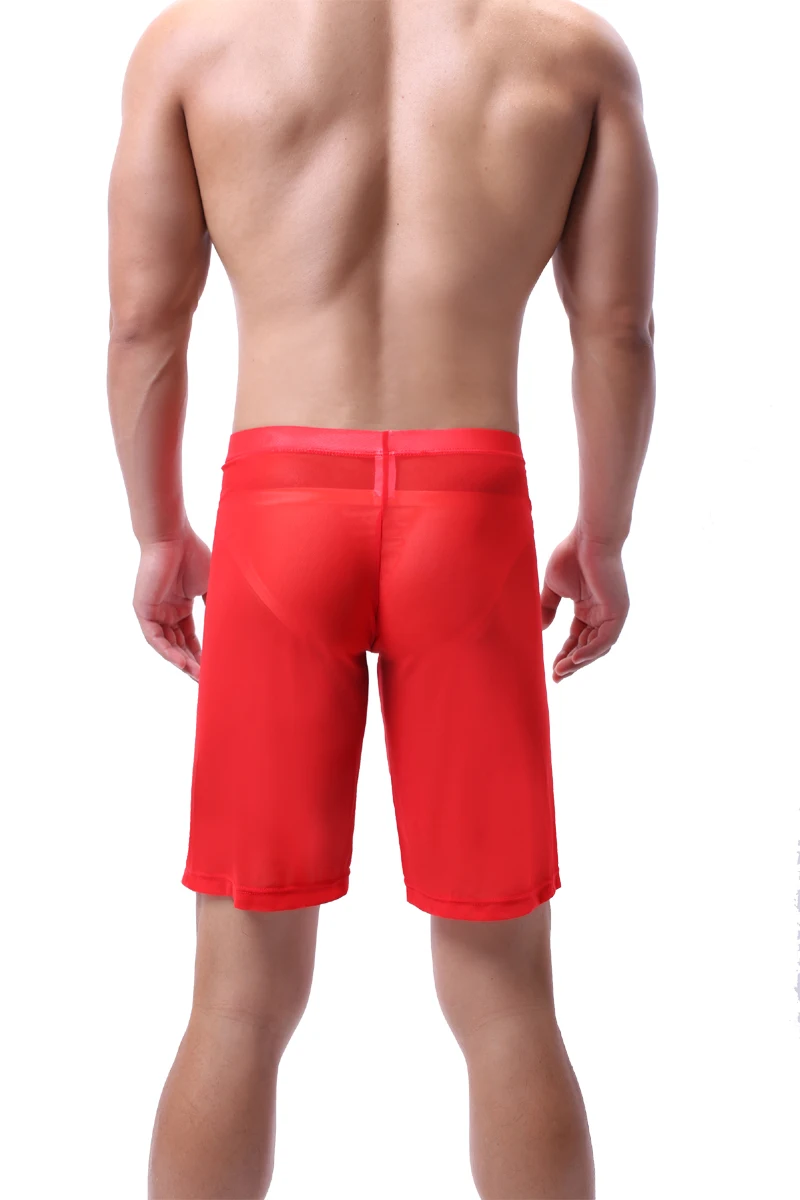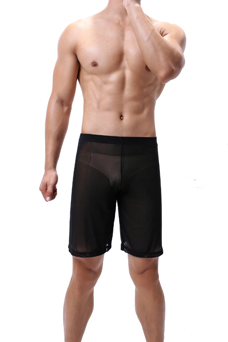 Mens Sleep Bottoms New Long Boxer See Through Sexy Mesh Loose Sleepwear Comfortable Gay Underwear Man Home Shorts Homme Pajamas