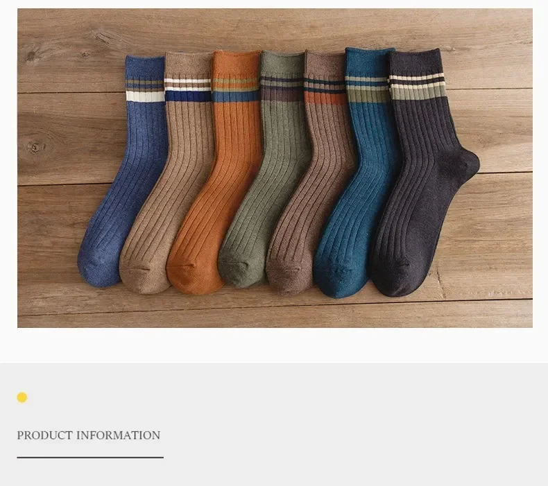 Men’s Striped Cotton Socks Spring Fashion Casual Socks High Quality Harajuku Retro Socks Man Calcetines Hombre Meias Masculina