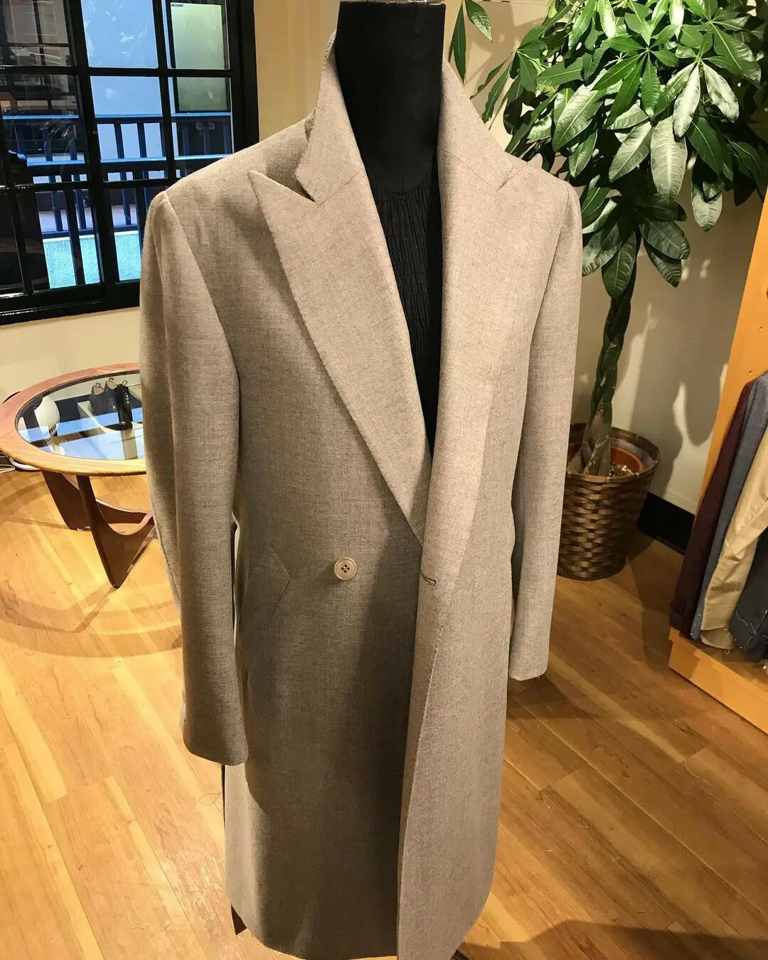 Mens Suit Tweed Long Overcoat Wool Blend Tailored Notch Lapel Herringbone Custom Men Suit Blazer