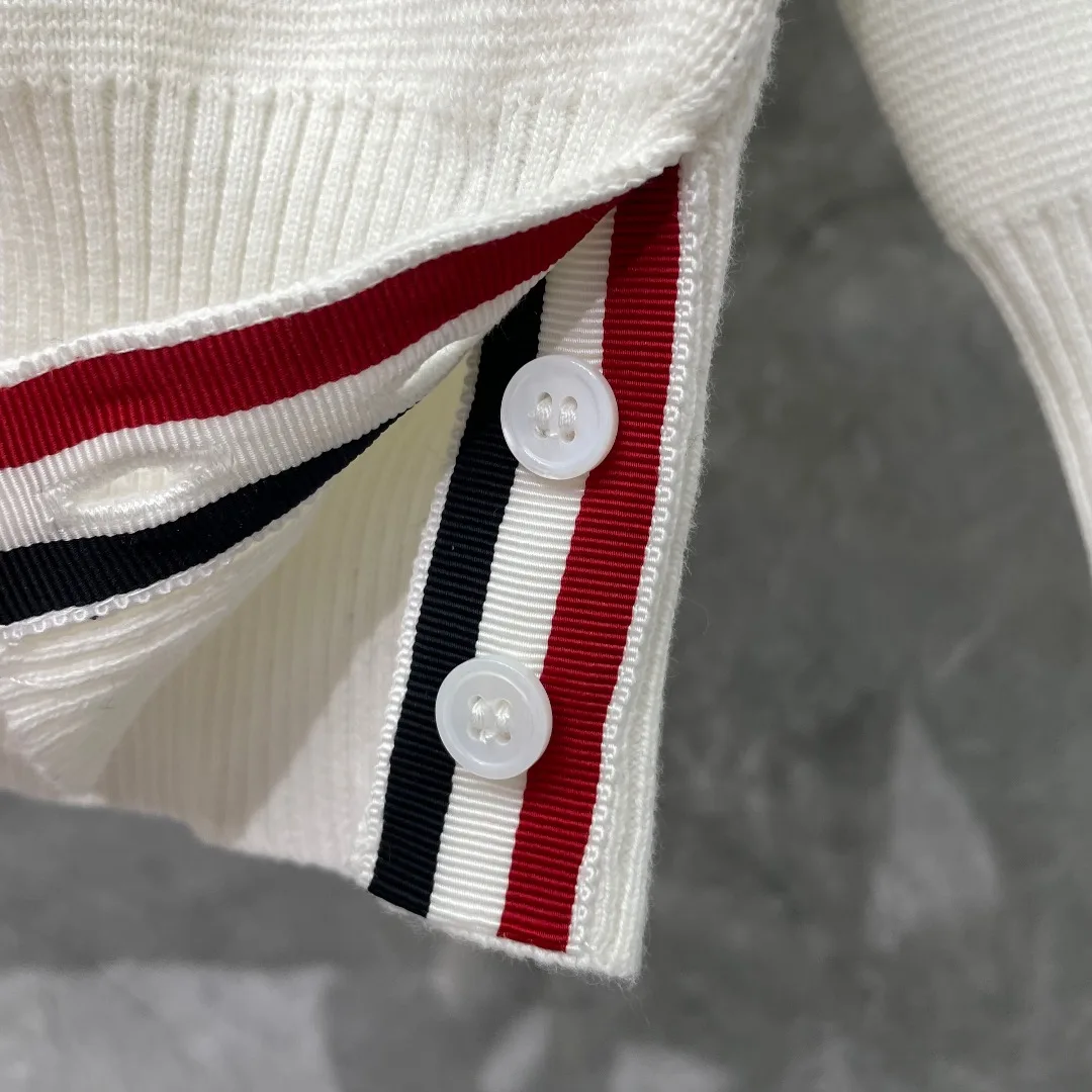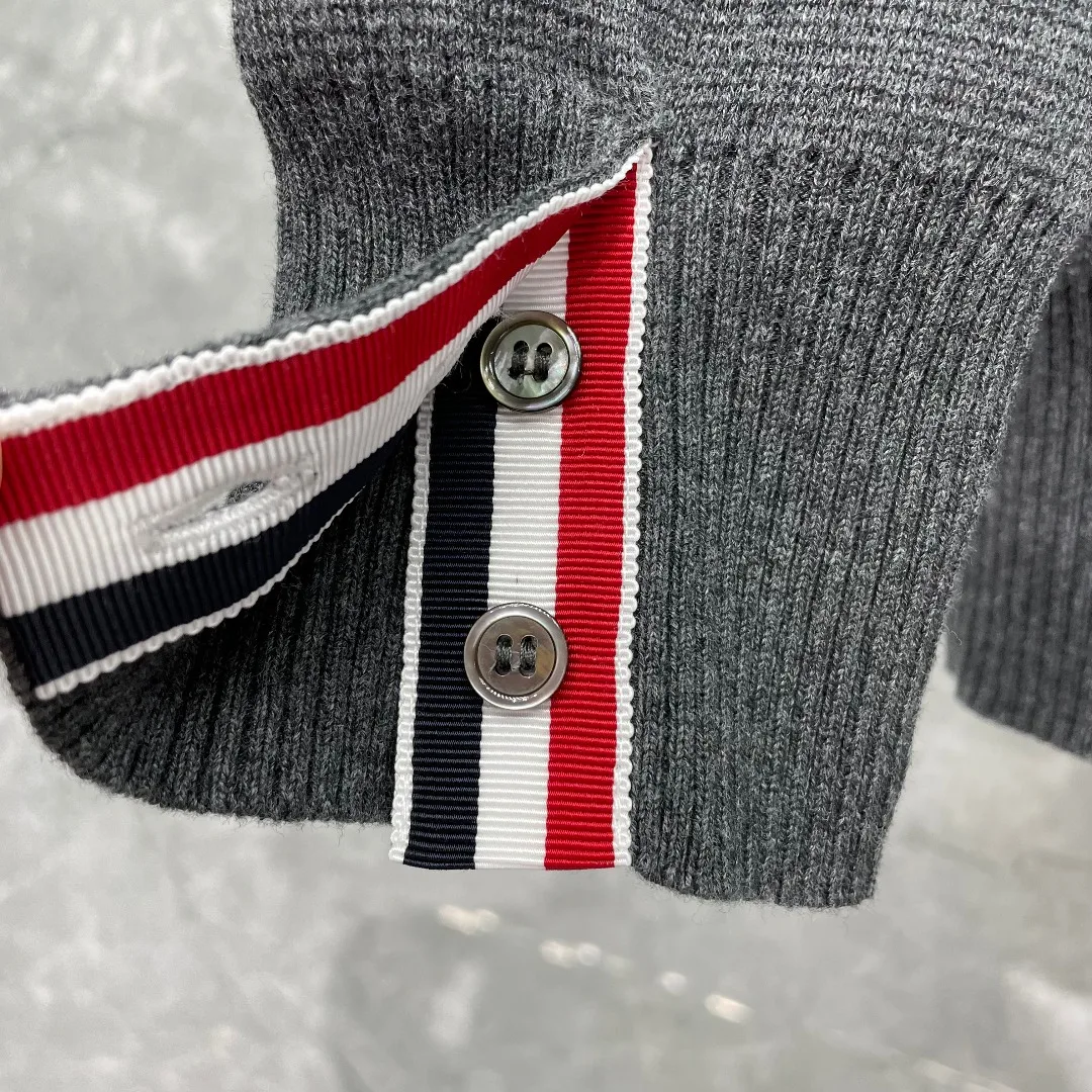 Men’s Sweater Autumn Winter Fashion Fine Cotton RWB Center Back Stripe Knit V-neck Cardigan High Quality Knitted TB Sweaters
