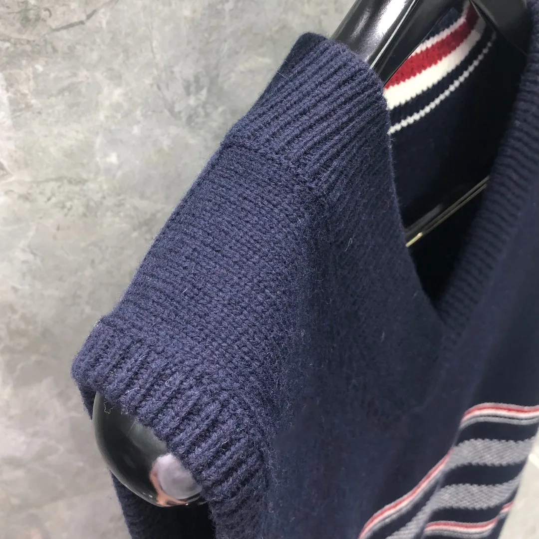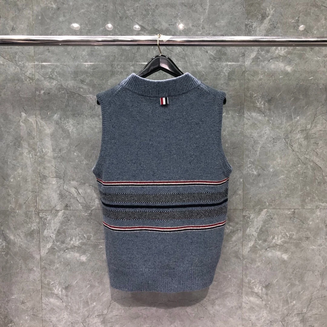 Men’s Sweaters Korean Version Of Vest Harajuku Knitted Pullover Hem Striped Top Luxury Brand Coat Gray Vest Sweaters