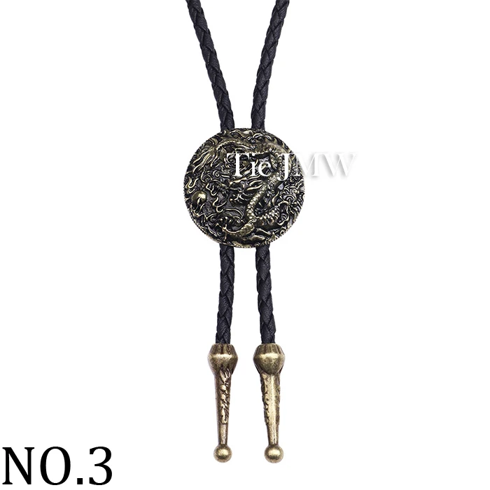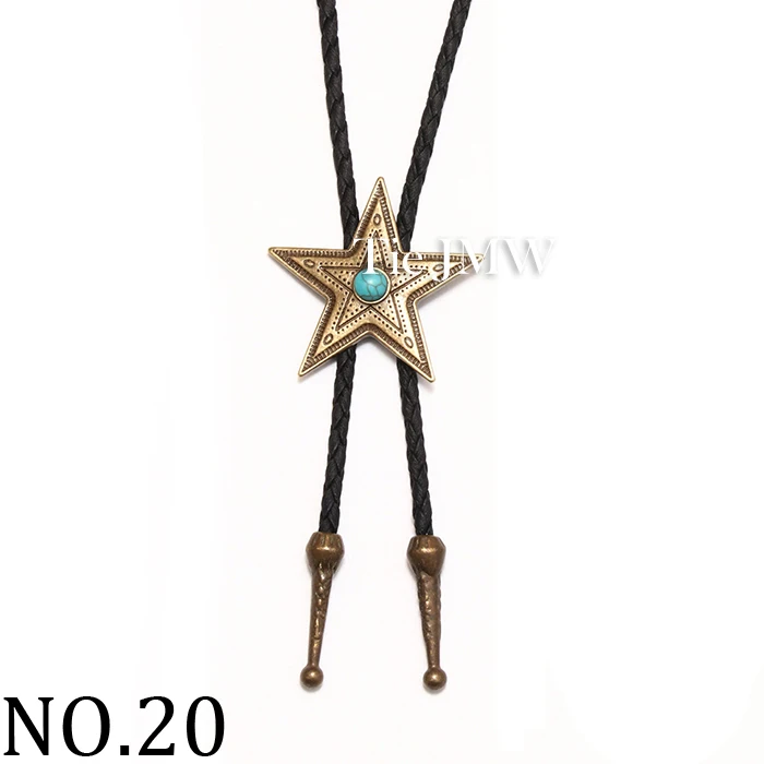 Men’s Trendy Bolo Tie Retro Shirt Chain Bolo Collar Rope Leather Necklace Tie Dance Necktie Star Wolf Cattle Pattern Pendant